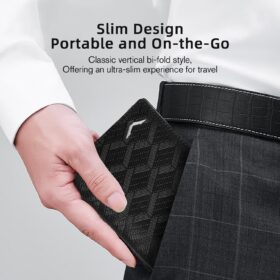 VERTU Neo-Vault Slim Wallet for men, Black Leather Purse Gift, Smart Tech Anti-Skimming Security for Business and Travel Use