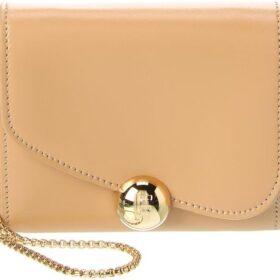 Ferragamo Asymmetrical Flap Leather Compact Wallet On Chain, Brown