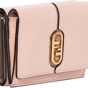 FENDI O’Lock Wallet Micro Trifold Rose Pink Tortora Gray Calf Leather