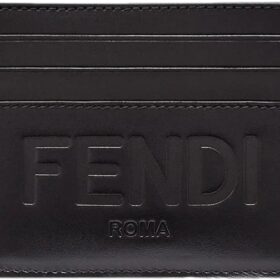 FENDI Roma Black Calfskin Leather Embossed Logo Card Case Wallet 7M0164