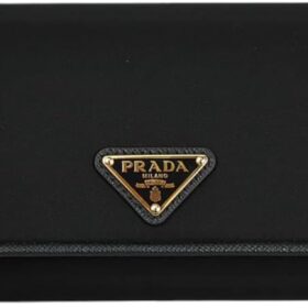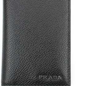 Prada Unisex Black Saffiano Leather Vertical Logo Card Holder, Small, Nero, 2MC101
