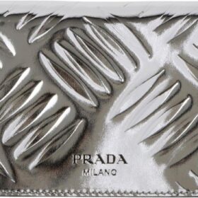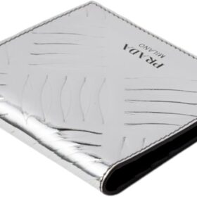 Prada Spazzolato Bifold Card Wallet, Metallic Silver Embossed Leather