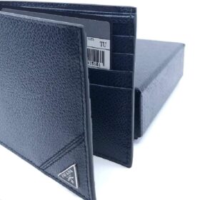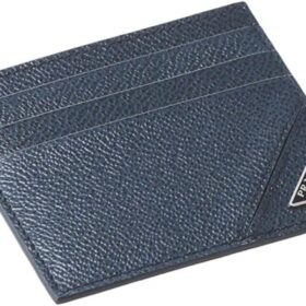Prada Vitello Grain Blue Leather Triangle Logo Vertical Bifold Wallet
