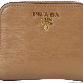 Prada Portamonete Vitello Move Caramel Beige Leather Zip Around Wallet 1MM268