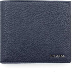 Prada Mens Baltico Blue Vitello Micro Grain Leather Bifold Wallet