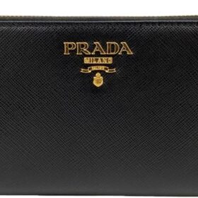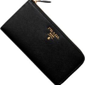 Prada Saffiano Long Continental Zip Wallet Black Leather Gold Logo