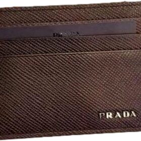 Prada Mens Brown Saffiano Leather Card Case Holder