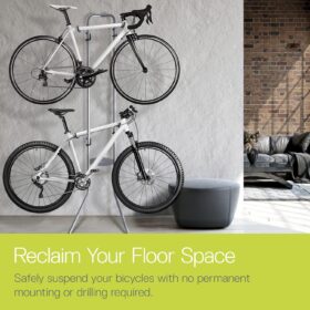Delta Cycle Michelangelo 2 Bike Storage Rack – Gravity Fully Adjustable Bike Rack Garage For Road, MTB, and Hybrid Bicycles – Vertical Bike Rack Holds Up To 80 lbs