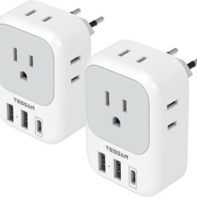 2 Pack European Travel Plug Adapter USB C, TESSAN US to Europe Plug Adapter with 4 Outlets 3 USB Charger, Type C Power Adaptor to Italy Spain France Portugal Iceland Germany, White Gray