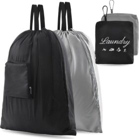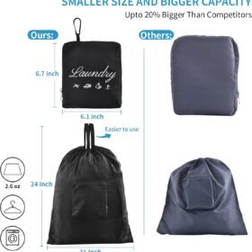 2 Pcs JHX Dirty Laundry Bag?Upgraded? with Handles and Aluminum Carabiner, Collapsible Clothes Bag for Travel, Camp, Fitness, and Students (Black&Grey) 24