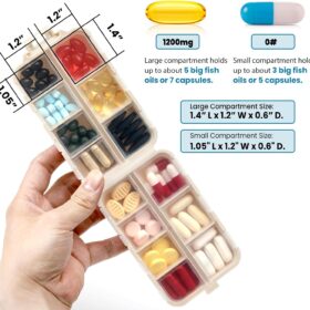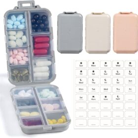 3 Pack, 14 GRIDS Travel Pill Organizer Box with Labels – Travel Medicine Case Kit – Pocket Daily Pharmacy Container – Travel Medication Holder Dispenser for Fish Oil Vitamin Supplement Storage