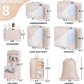 10 Set/8 Set-Packing Cubes for Travel, Sturdy Suitcase Organizer in 4 Size(Extra Large, Large, Medium, Small), OlarHike Luggage Cubes with Toiletry Bag, Essential Cruise Ship Gifts for Women