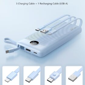 VRURC 10000mAh Power Bank Built-in Cables, Portable Charger with LED Display, Slim Travel Battery Pack with Cords, 5 Output Dual Input Phone Charger for Cell Phone Smart Devcies-Blue(1 Pack)