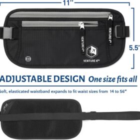 VENTURE 4TH Travel Money Belt – Slim Passport Holder RFID Blocking Travel Pouch to Protect Cash, Credit Cards and Travel Documents