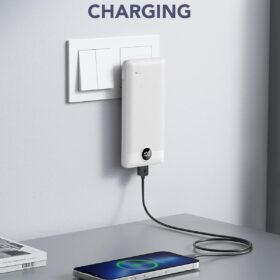 VRURC Portable Charger Built-in Cables and AC Wall Plug, USB C Power Bank 10000mAh, [2023 Upgraded Version] Phone Charger Compact Lightweight External Battery Pack for Smart Phones, Tablets etc-White