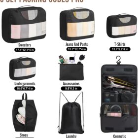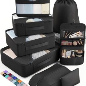 Veken 8 Set Packing Cubes for Travel, Suitcase Essentials Organizer Bags Set for Luggage, Road Trip Travel Accessories in 4 Sizes (Extra Large, Large, Medium, Small), Black