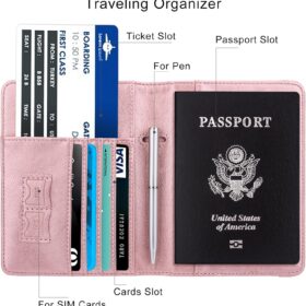 WALNEW Passport Holder for Travel, RFID Passport Cover Wallet for Women Men, PU Leather Passport Book Card Holder Case with Pen, Travelling Essentials for Flying