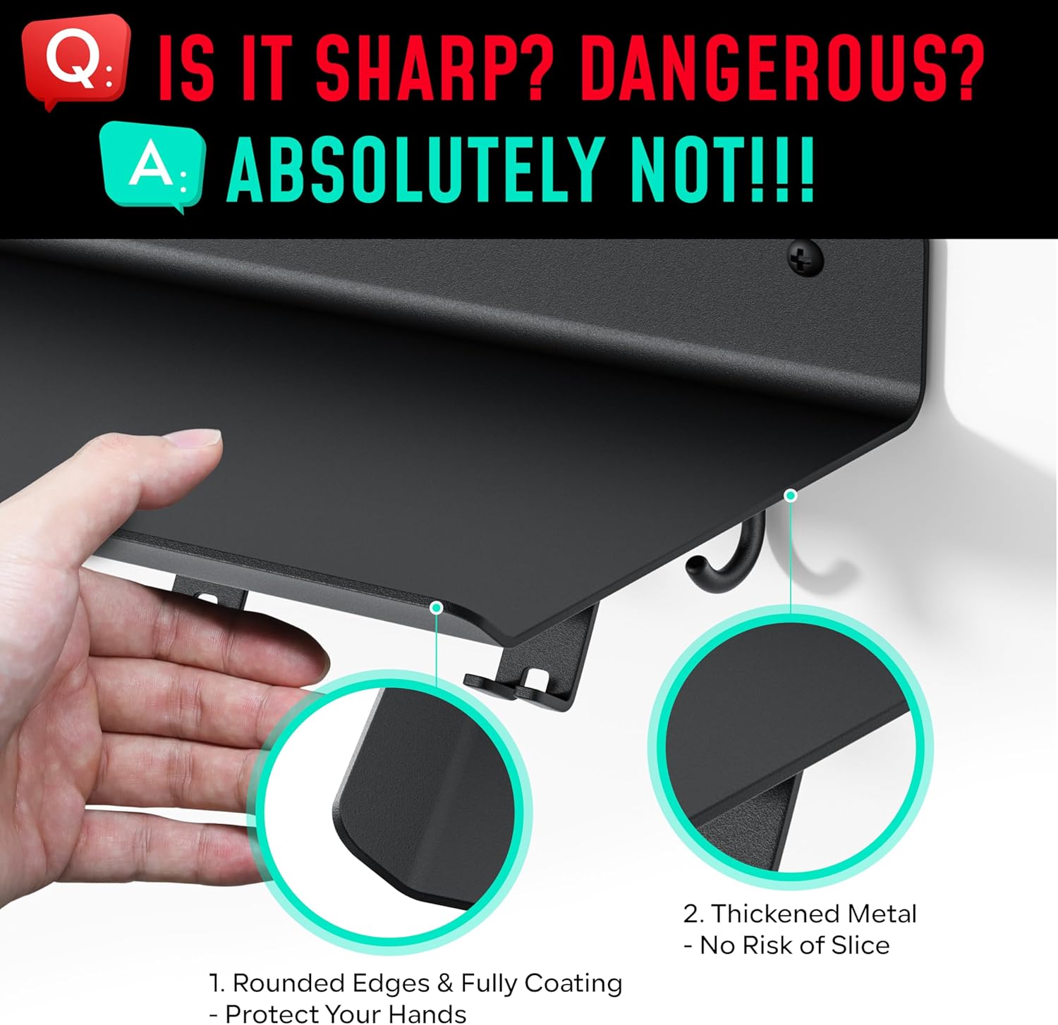About this itemnSturdy Metal Construction: The Crostice floating shelf is made from top-grade metal with a rust-resistant coating, ensuring long-lasting durability and safe storage for your workout accessories.nVersatile Storage Solution: Designed to organize T-bracket accessories and other fitness equipment, this sleek wall-mounted rack features 6 brackets for T-shape lock accessories, 5 additional hooks for hanging items like towels and resistance bands, and a spacious top shelf for convenient storage.nEasy Installation: The shelf comes with anchors and screws for quick installation, requiring only a drill with a 3/16 inch bit, making it hassle-free to set up and keep your space organized.nStylish and Functional: With its rounded edges, fully coated surface, and sleek design, the Crostice floating shelf complements any room style while providing a safe and practical storage solution for homes with children or pets.