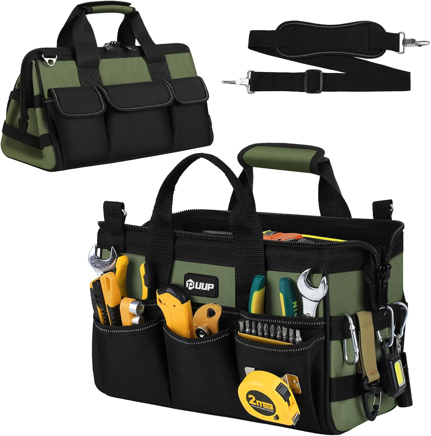 12-Inch Small Tool Bag, 15-Pocket Portable Tool Box Organizer Storage, Heavy Duty Tactical Carrying Tote, Home Toolbag with Large Zipper, Father Day Dad Men Engineer Electrician Gift, Green