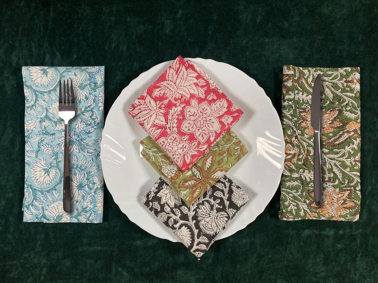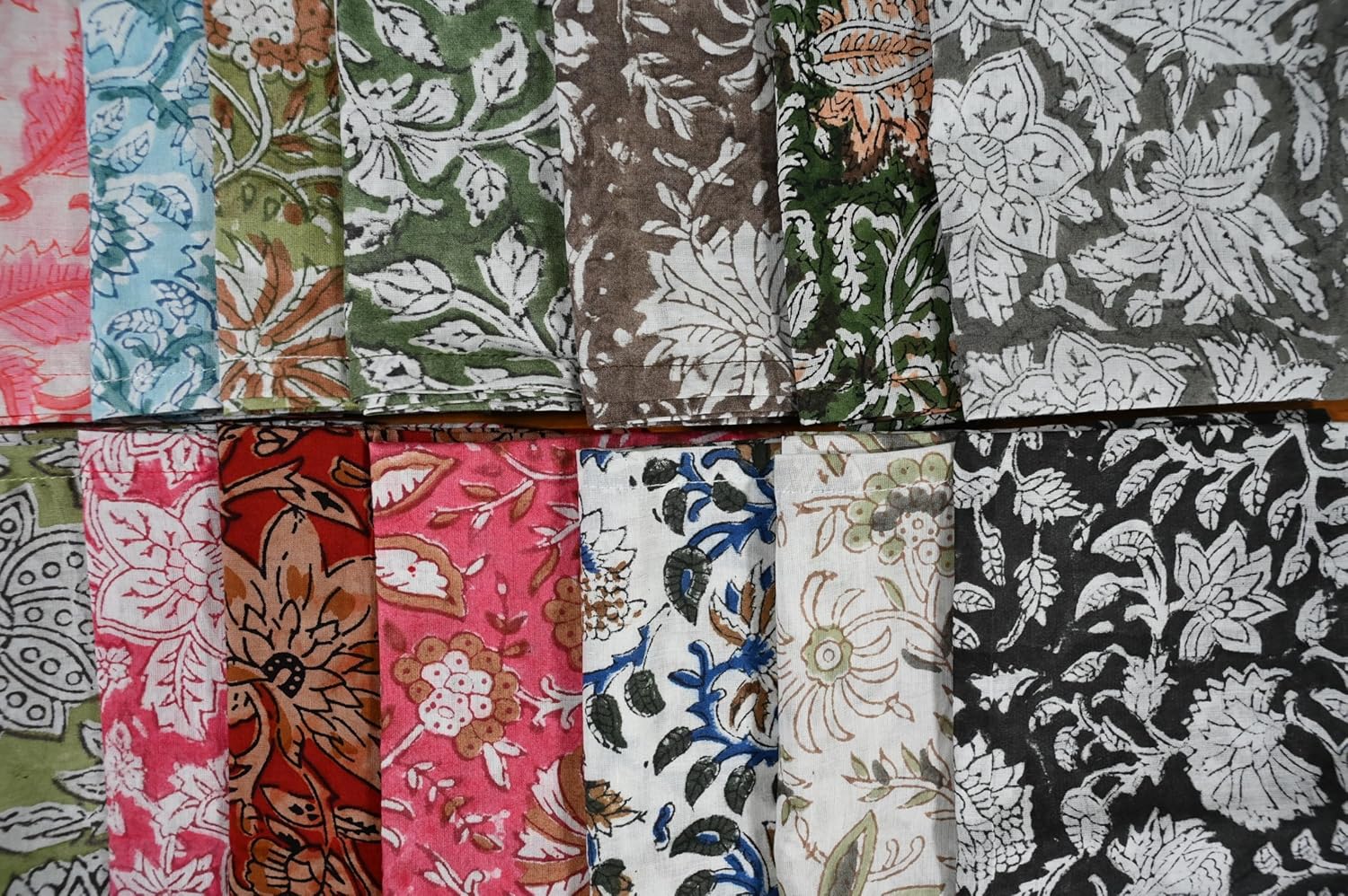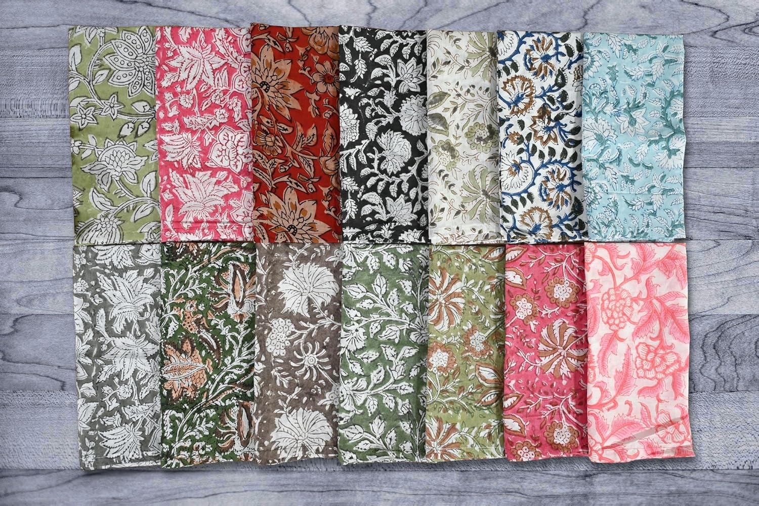 About this itemnPremium Quality Material: Made from 100% pure cotton, ensuring softness, durability, and excellent absorbency. || Package – 12 PcsnHandcrafted Beauty: Features intricate hand-block floral prints, showcasing skilled craftsmanship and attention to detail.nAssorted Designs: A delightful mix of unique floral patterns and vibrant colors to enhance any table setting.nEco-Friendly and Reusable: Sustainable alternative to paper napkins, reducing waste while adding elegance to your dining experience.nVersatile Use: Perfect for everyday meals, special occasions, picnics, or as decorative accents.nGenerous Size: Large enough for functional use yet compact for easy storage.nEasy Care: Machine washable for effortless cleaning; maintains color and texture even after multiple washes.nGift-Ready: Makes a thoughtful and stylish gift for housewarmings, weddings, or festive celebrations.