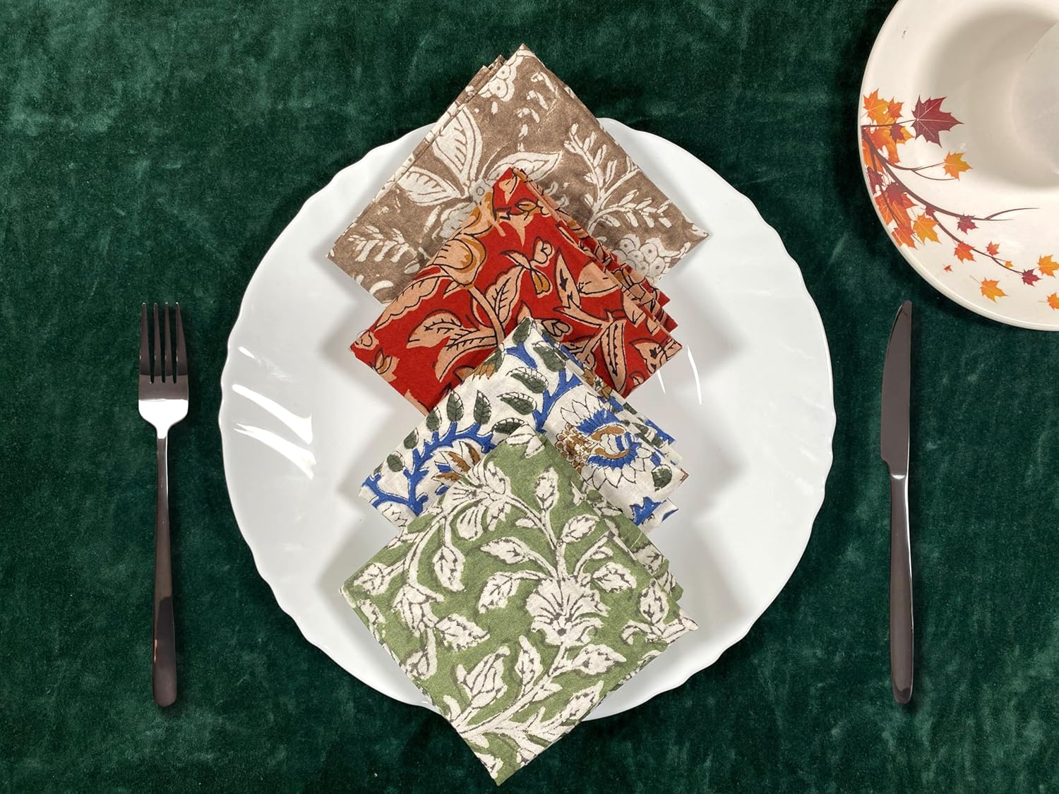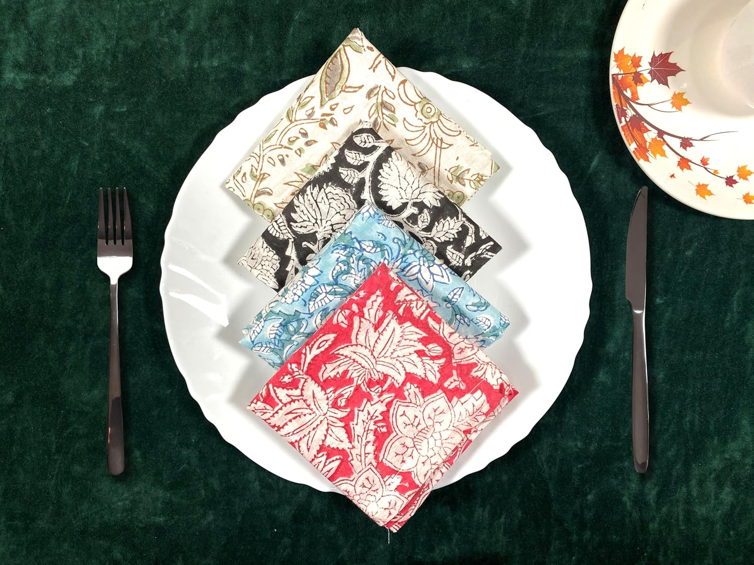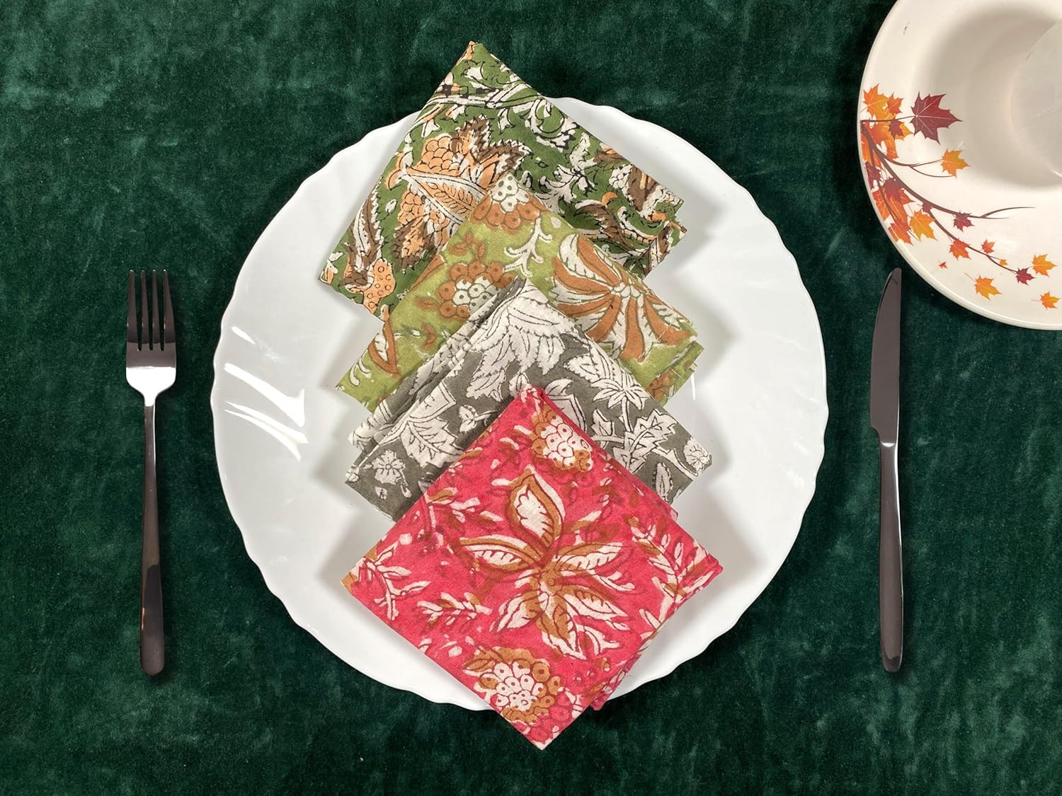 About this itemnPremium Quality Material: Made from 100% pure cotton, ensuring softness, durability, and excellent absorbency. || Package – 12 PcsnHandcrafted Beauty: Features intricate hand-block floral prints, showcasing skilled craftsmanship and attention to detail.nAssorted Designs: A delightful mix of unique floral patterns and vibrant colors to enhance any table setting.nEco-Friendly and Reusable: Sustainable alternative to paper napkins, reducing waste while adding elegance to your dining experience.nVersatile Use: Perfect for everyday meals, special occasions, picnics, or as decorative accents.nGenerous Size: Large enough for functional use yet compact for easy storage.nEasy Care: Machine washable for effortless cleaning; maintains color and texture even after multiple washes.nGift-Ready: Makes a thoughtful and stylish gift for housewarmings, weddings, or festive celebrations.