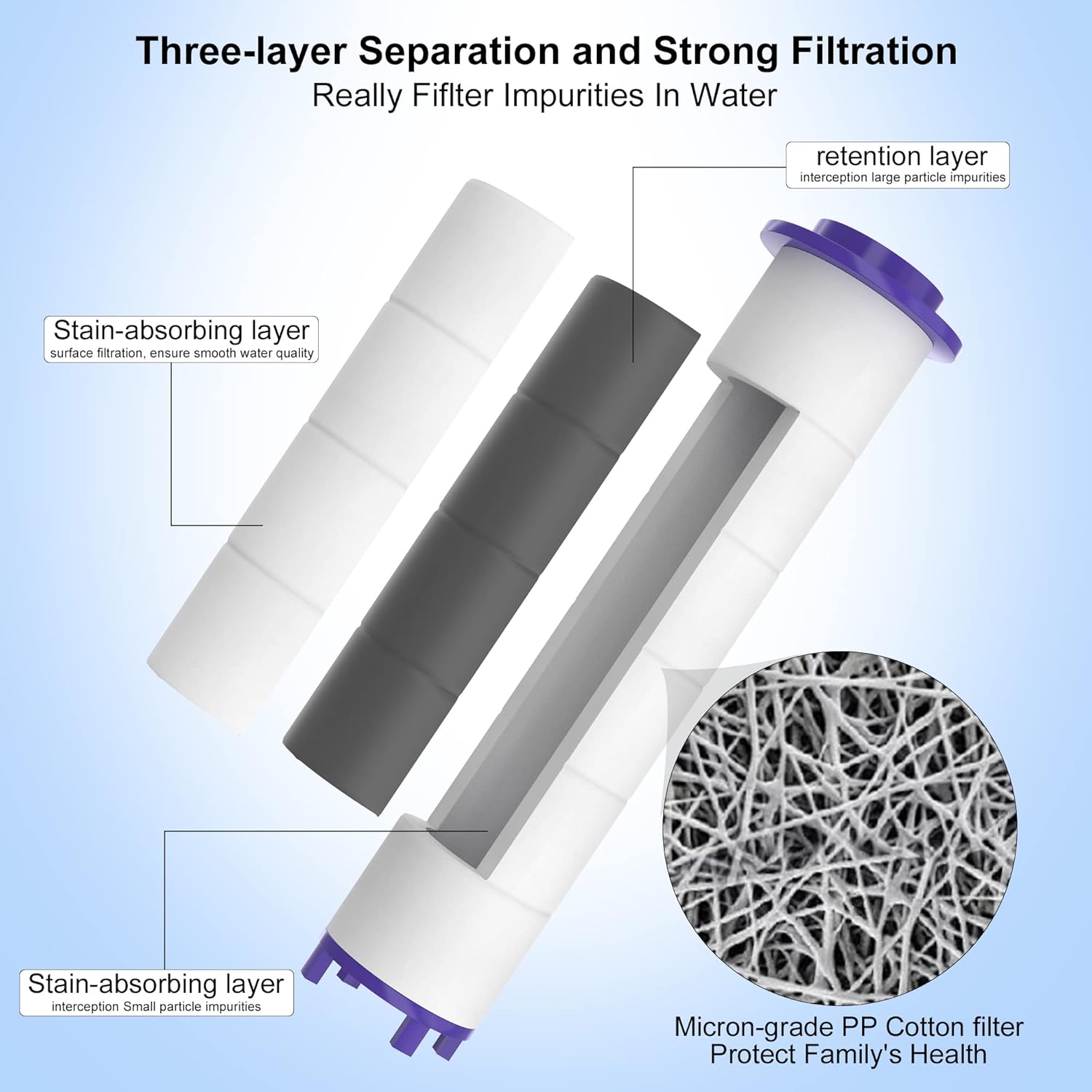 About this itemn???Number of Items?Set of 12 filters in one packn???Material?PP-Cotton filtern???Perfect Match?Suitable for hydro jet shower head, vortex shower head, propeller shower head, turbo shower headn???Filters Better for Your Family Skin & Hair?Our shower head filter provides well-protections for your family health, as its specialized in removing chlorine, fluoride, heavy metals or other sediments, etc. less well risk of developing eczema, reduces dry itchy skin, dandruff cares about the health of the skin, hair, nails ideal for bathing children and your Pets.n???Serve You All The Year?Filters replaced in every month are recommended, but it depend on the quality of your local tap water, when you see the filter turns in yellow, you need to replace the filter. 12 pack PP cotton filter can ensure your family’s hair & skin health in the shower throughout the year.n See more product details