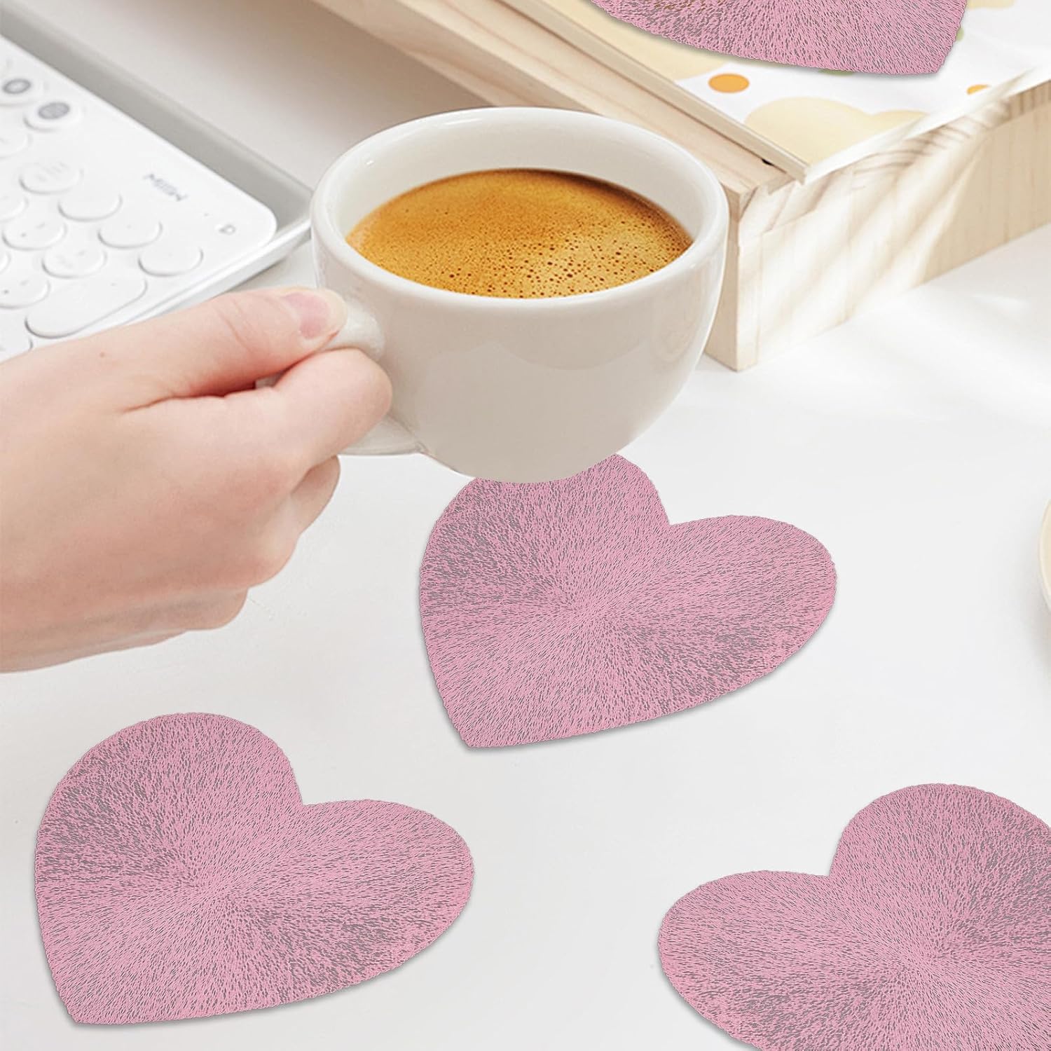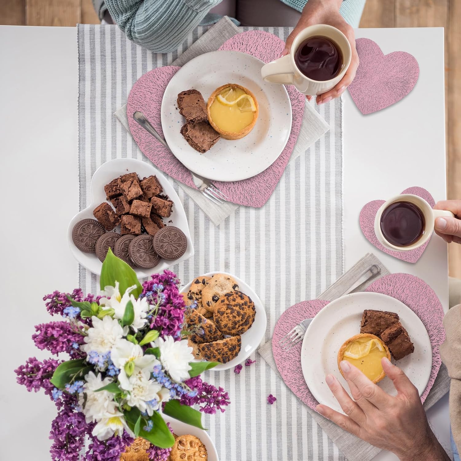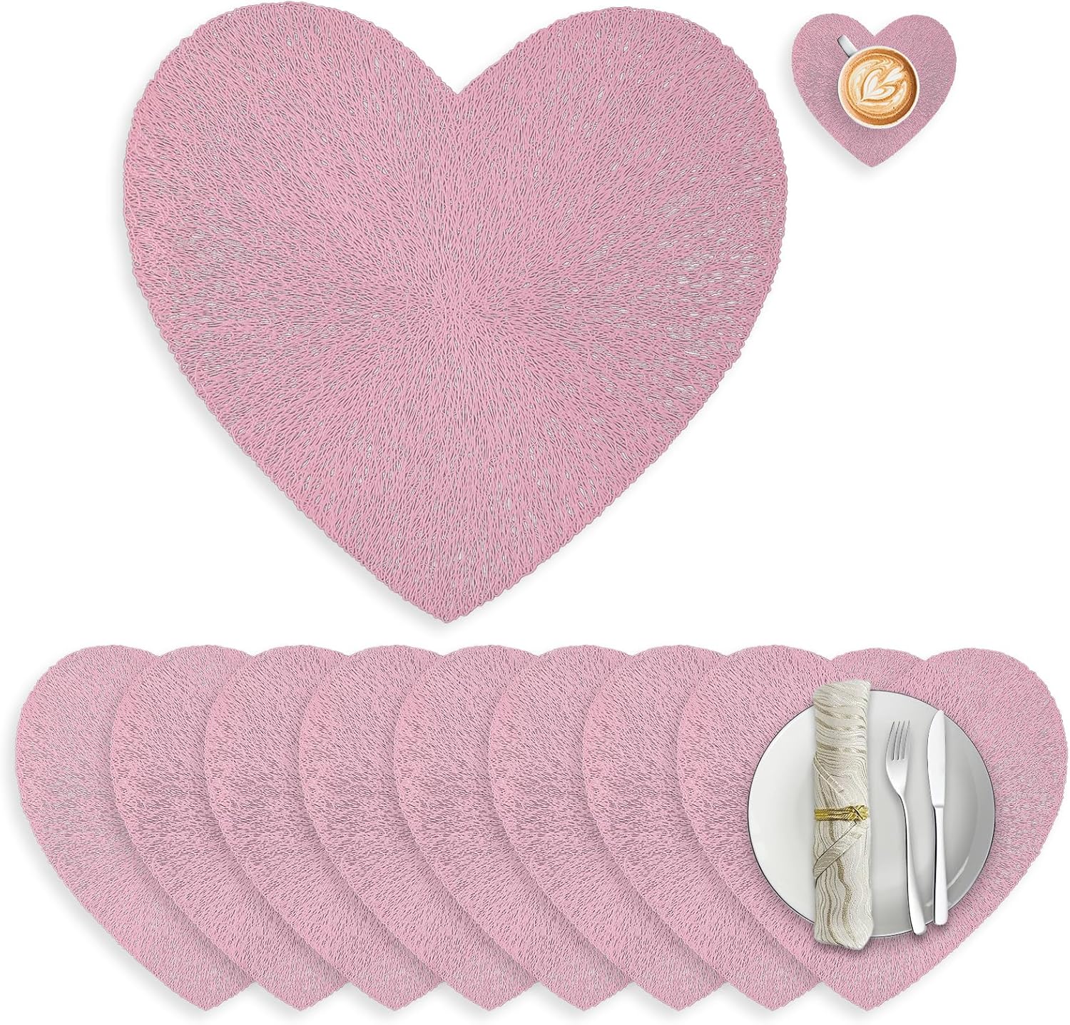 16 PCS Heart-Shaped Placemats and Coaster Valentine’s Day Placemats Pink PVC Waterproof Dining Table Mats Decor for Party Kitchen Dining