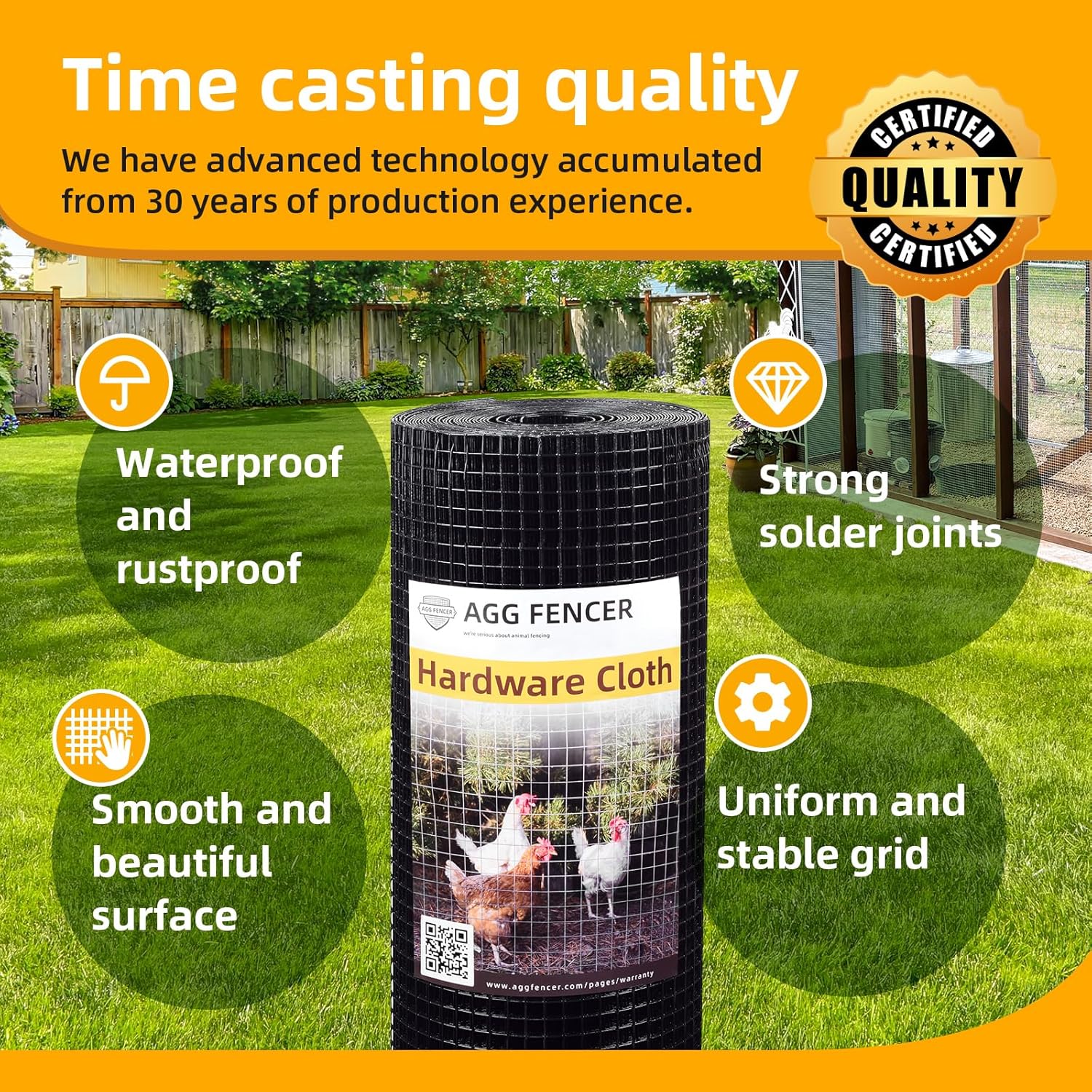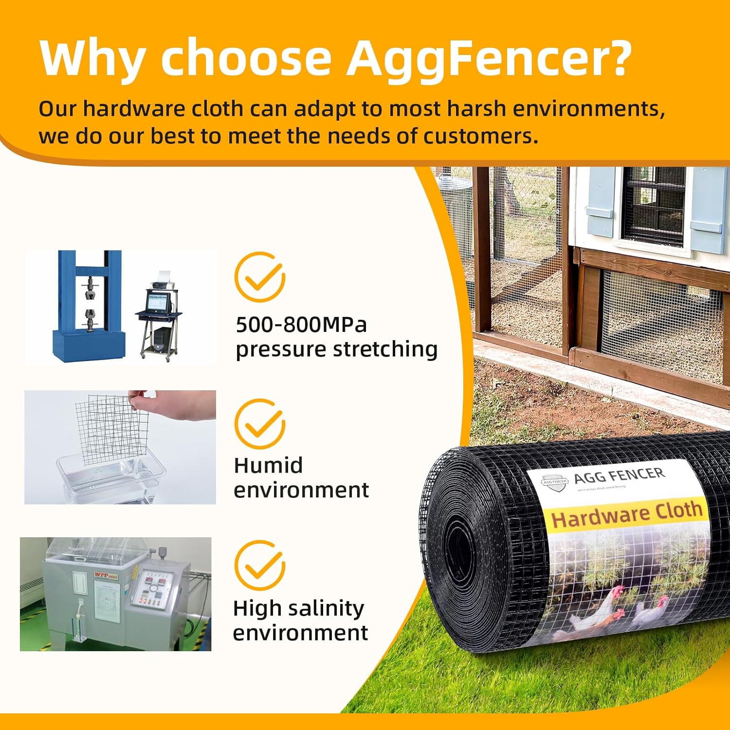 About this itemn?High quality raw materials?Our hardware cloth chooses the strength, toughness and ductility of low carbon steel wire as the inner core. This determines the basis of the high quality of our products.n?Professional galvanized process? We have 30 years of experience, the use of advanced production technology. Our metal cloth is impregnated after the completion of galvanizing, which greatly reduces the problem of solder joint rust and greatly prolonging the use time.n?Strong durability? Our galvanized hardware cloth waterproof, rust proof, corrosion resistance, tear resistance, smooth surface beautiful. Even in a variety of wet, saline-alkali environment still remains the same, is one of the best choice for making fences.n?Multipurpose?Our hardware cloth is suitable for chicken coop fences or other poultry fences, rabbit/cat/dog fences, backyard snake and rat protection fences, garden flower beds, orchard tree protection boards, soil screens, balcony protection, gutters, eaves, gutter guardrails, handicrafts making, etc.n?Complete Specifications?We offer many specifications to support the various scenario needs of our customers, while supporting customized services.n See more product details