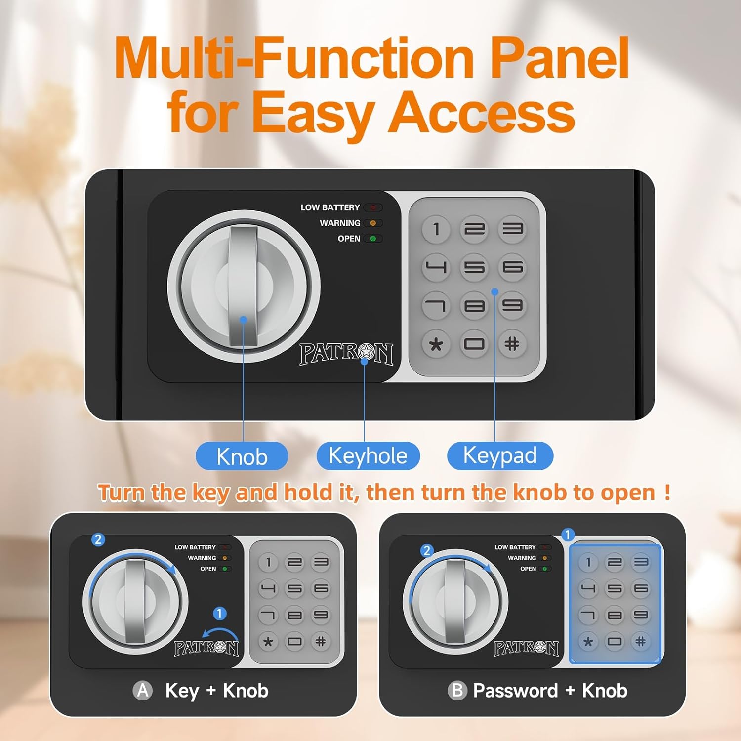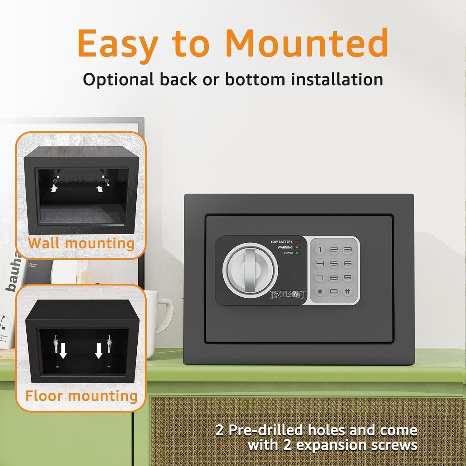 17NEF-FP PATRON Safe Box fireproof safe for home documents ?mini safe for money?coin safes with code?fire proof lock box for kids?Wall or Cabinet Safe for personal items?0.236 Cubic Feet Black