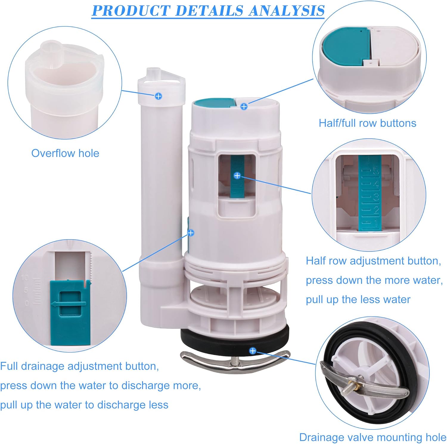 180mm Height White Toilet Push Button Valve Element Dual Flush Toilet Valve Top Button Replacement Assembly with Screwdriver&Tape