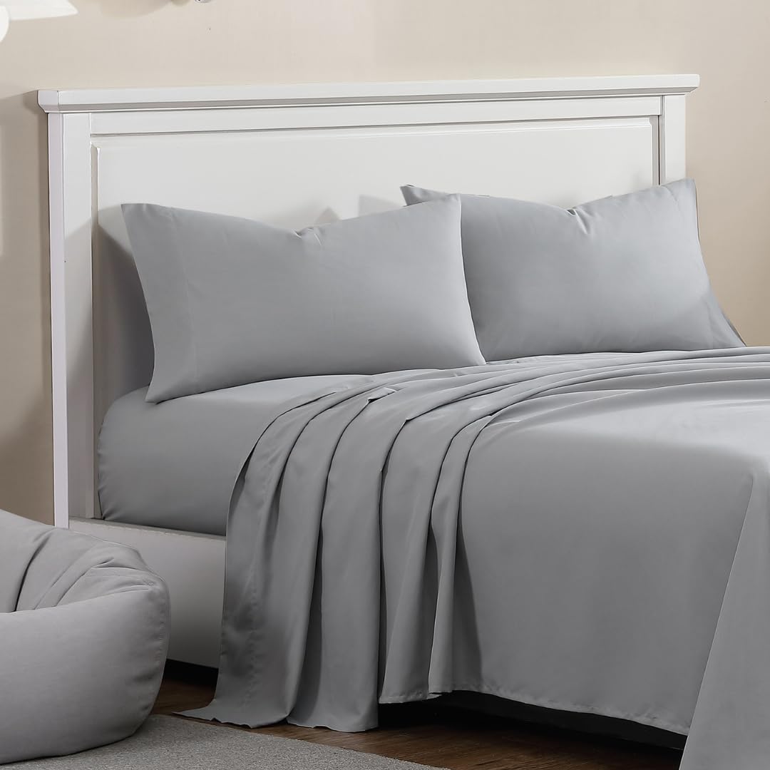 1888 Mills Queen Sheet Set 4 Piece Bedding Soft and Shrinkage Resistant Deep Pockets True Classic Bed Sheet Set (Gray, Queen)