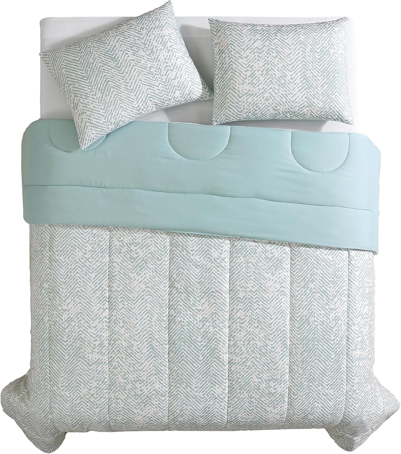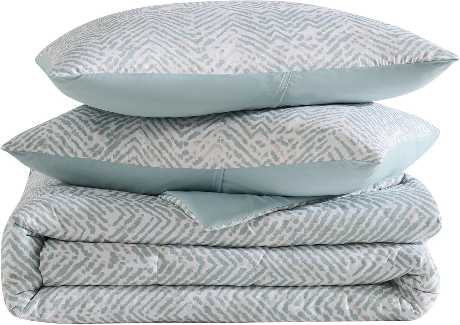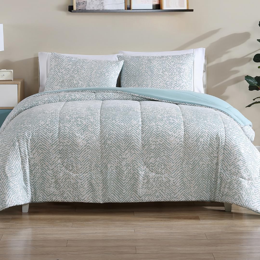 1888 Mills Twin Comforter Set, 2 Pieces Reversible (Solid and Geo Print), All-Season Lightweight and Soft Bedding with Easy Care, 1 Comforter (86x66) and 1 Pillow Sham (20x36)