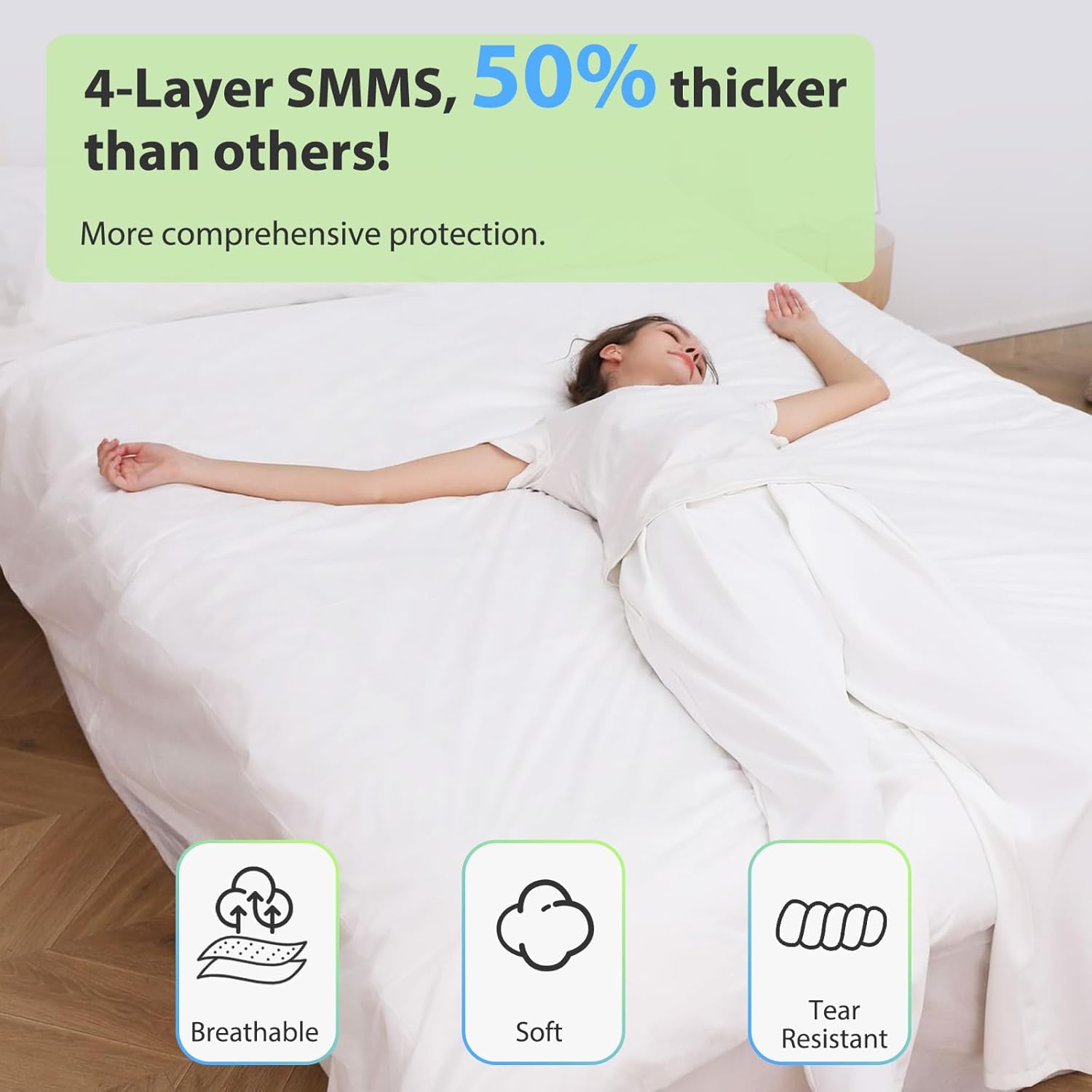 About this itemn2 Pack Disposable Bed Sheet Set: Each disposable bedding set consists of 2 king size fitted sheet (78