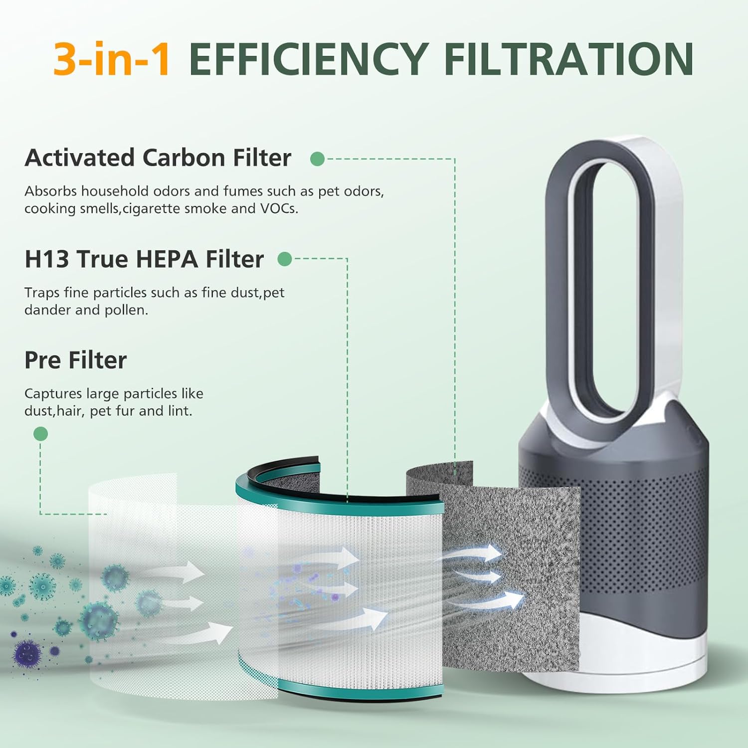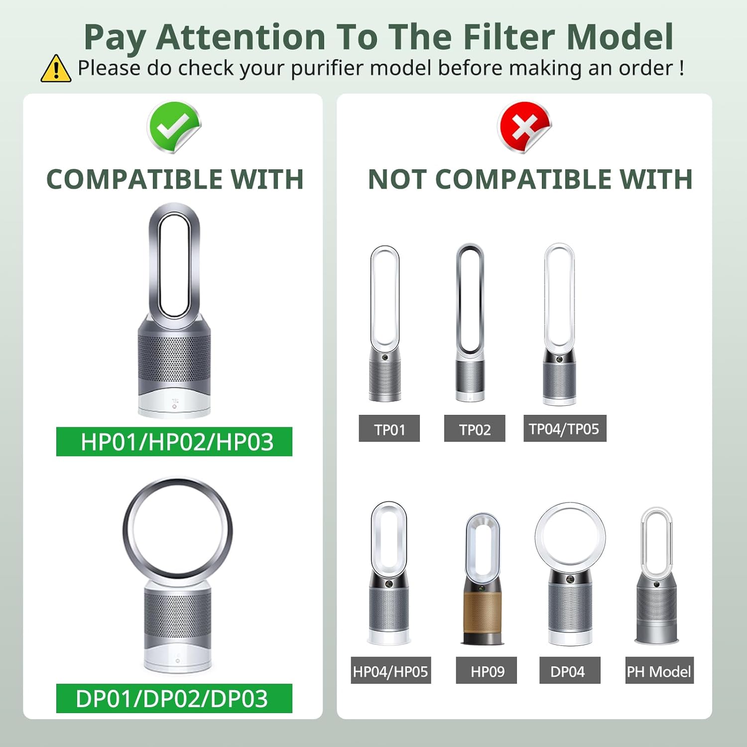 About this itemnAir purifier filter replacements for dyson HP01 filter, Dyson Pure Cool Link Desk DP01 DP02, DP03, Dyson Pure Hot + Cool Link HP01 HP02, HP03, replaces part # 968125-03nH13 HEPA filter captures up to 99.97% of particles as small as 0.1 microns in size from your indoor air. Please confirm the height of your filter to ensure that this is the correct filternPremium replacement for dyson HP01 filter effectively improve the quality for your home by removing 99.97% of airborne particles down to 0.3 micronsn3-in-1 Efficiency Filtration design for dyson air purifier filter replacements, dyson hp02 filter HEPA, Pre-Filter, Activated carbon layer to help improve indoor air quality. Package contains 2 pack HP02 HP01 DP01 DP02 filter replacement manufactured for dyson fan air purifiernPRODUCT Assurance: isinlive manufactured Advanced Filters. we ensure you a reshipping new pack with dyson 968125-03 filter if you are not satisfied with anything.n See more product details