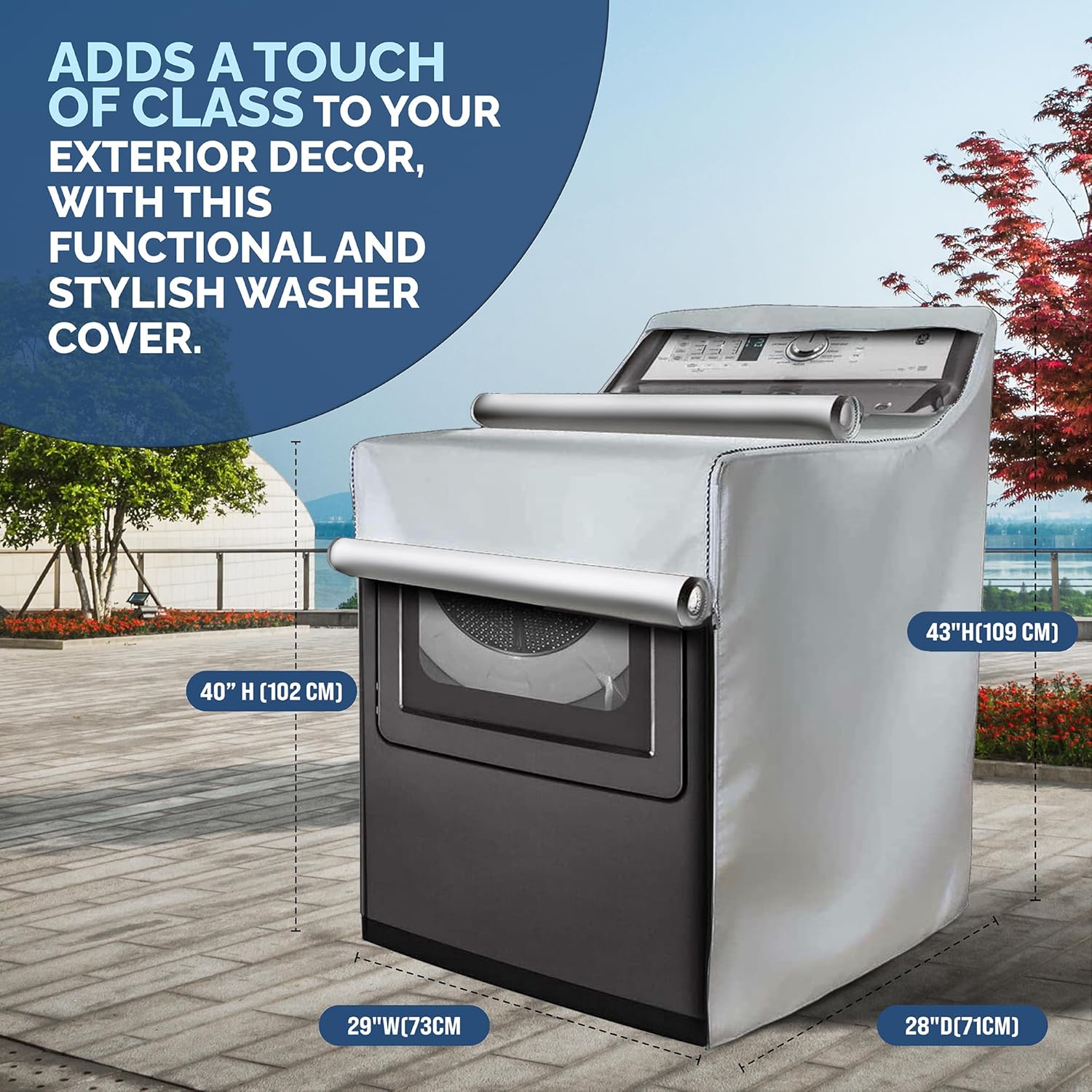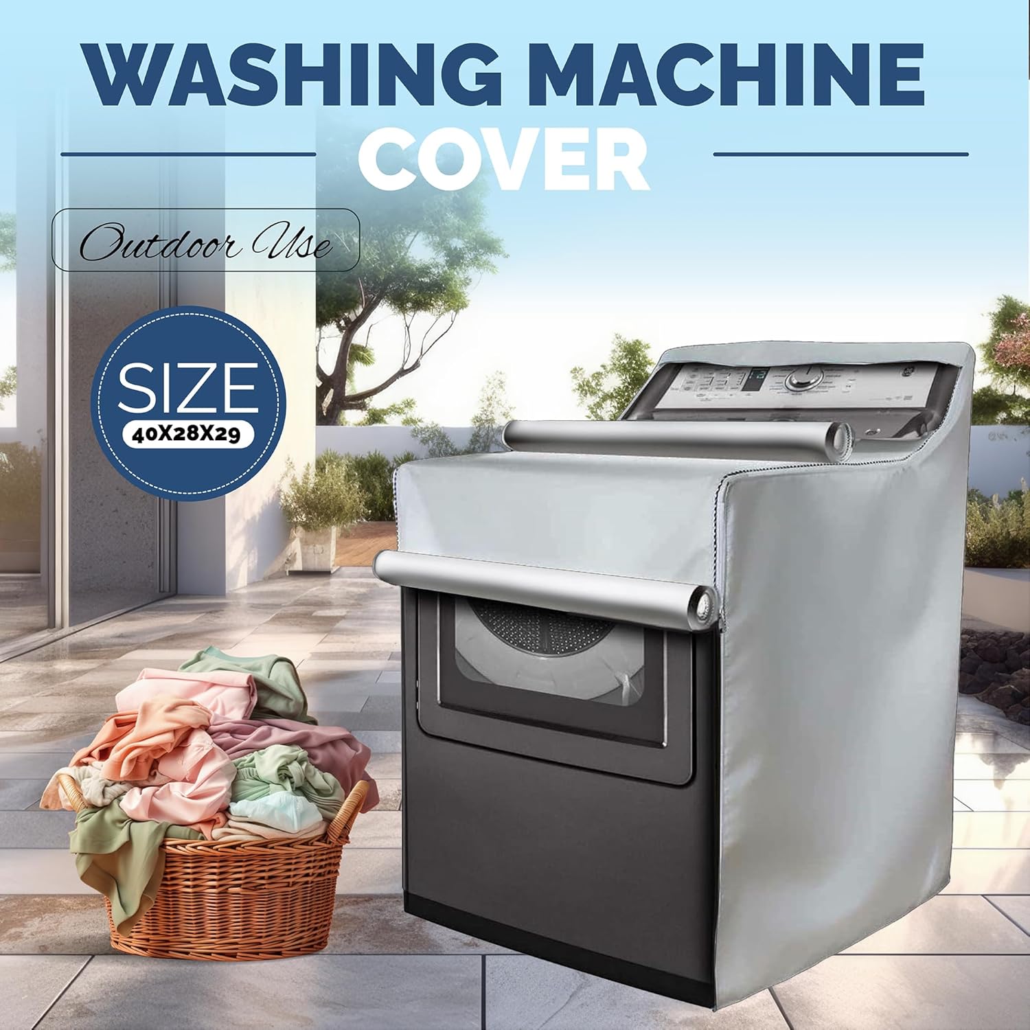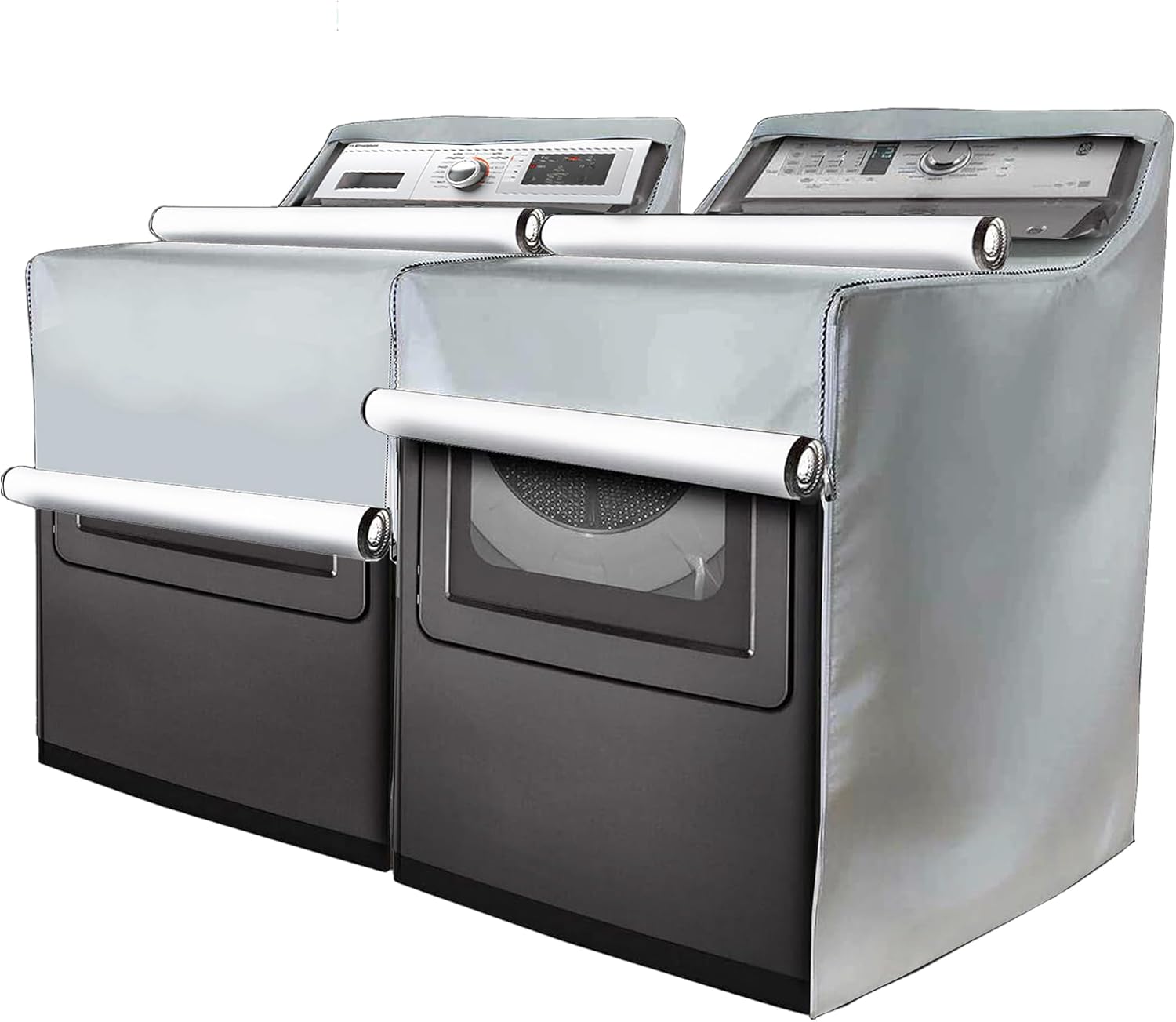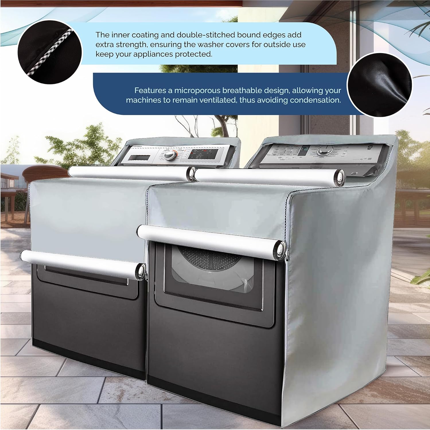 2 Pack – Outdoor Washer and Dryer Covers for the Top – Waterproof Dustproof Washing Machine Cover with Zipper Fits Top and Front Load Machines Washer Dryer Cover, Washer Covers (2 Pack – Platinum)