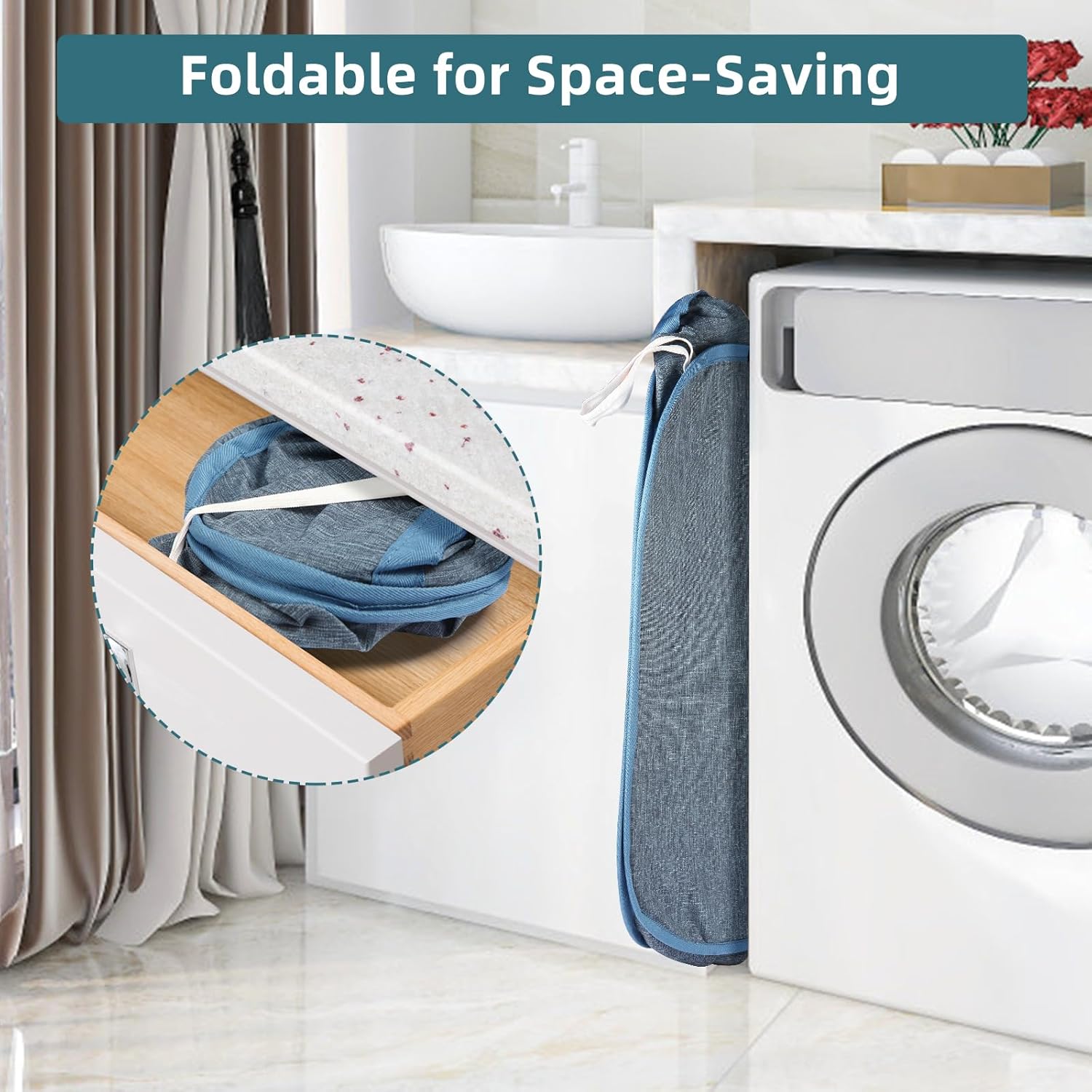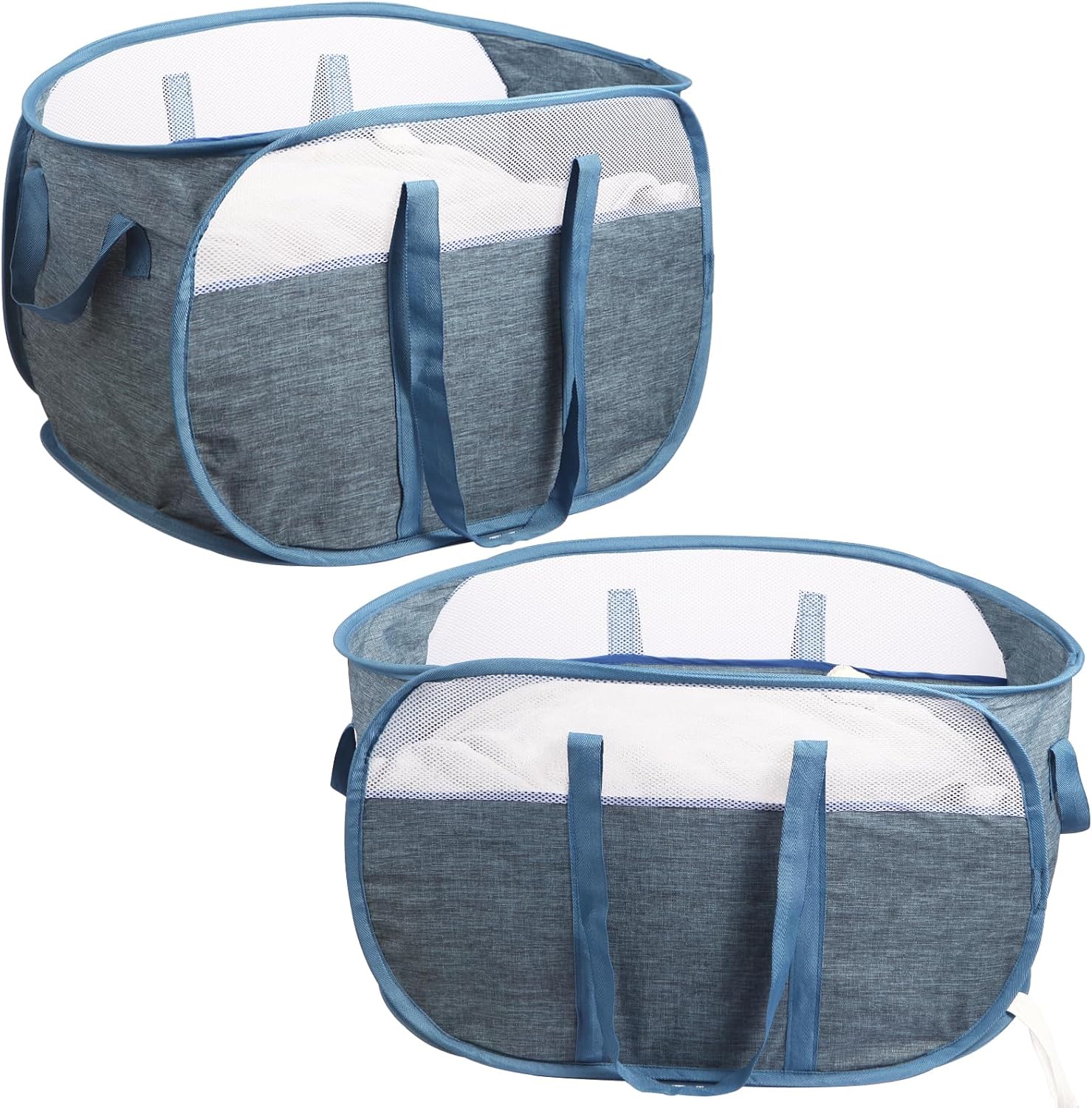 2 Pcs Collapsible Laundry Baskets, Tear Proof Pop Up Laundry Hamper with Dual Handles, Durable Foldable Laundry Basket, Easy to Carry Laundry Hamper for Home, Laundry Room, Bedroom, Dorm, Travel Blue
