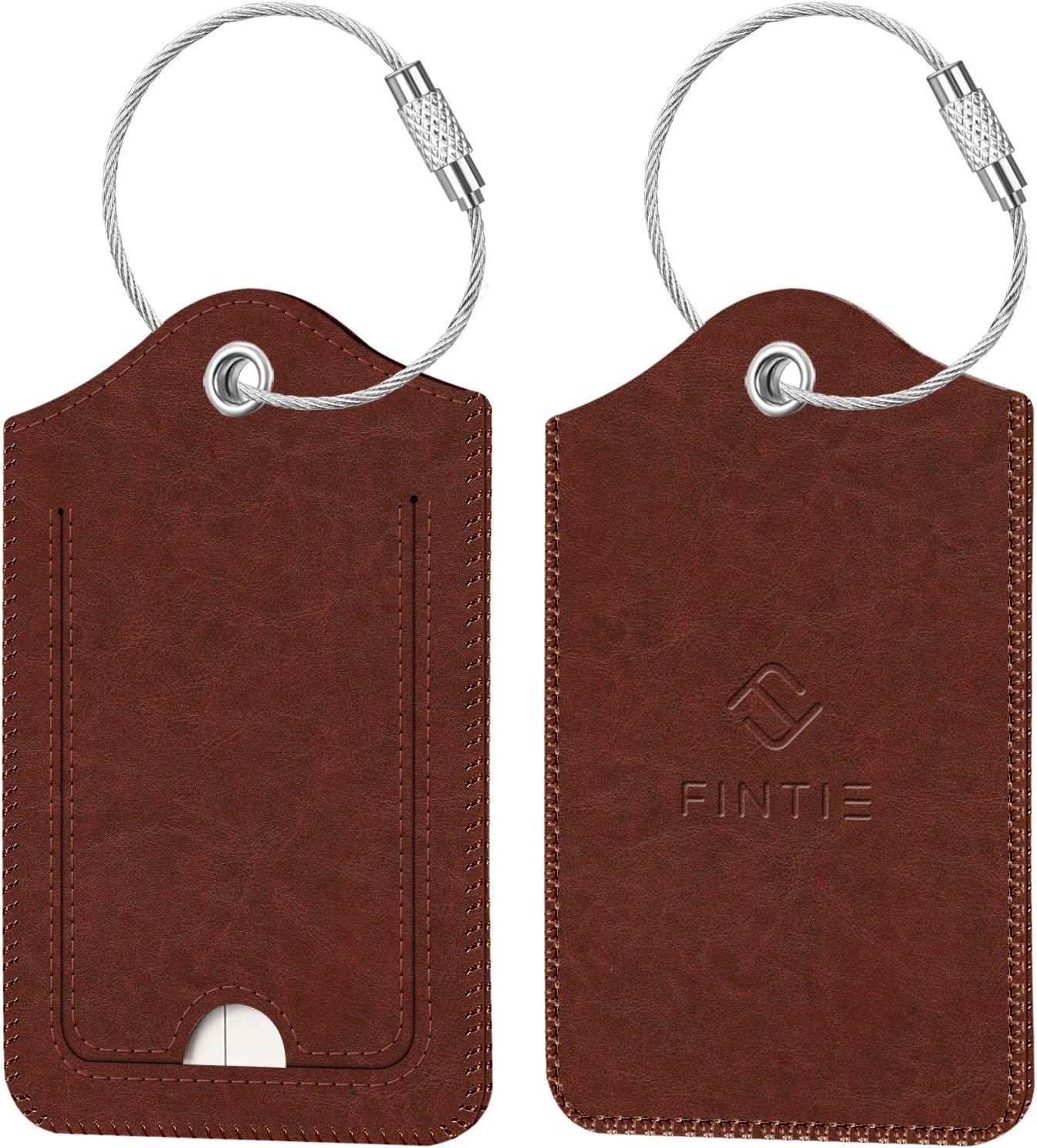 2 Pcs Luggage Tags, Fintie Privacy Cover ID Label with Stainless Steel Loop and Address Card for Travel Bag Suitcase, Retro Brown