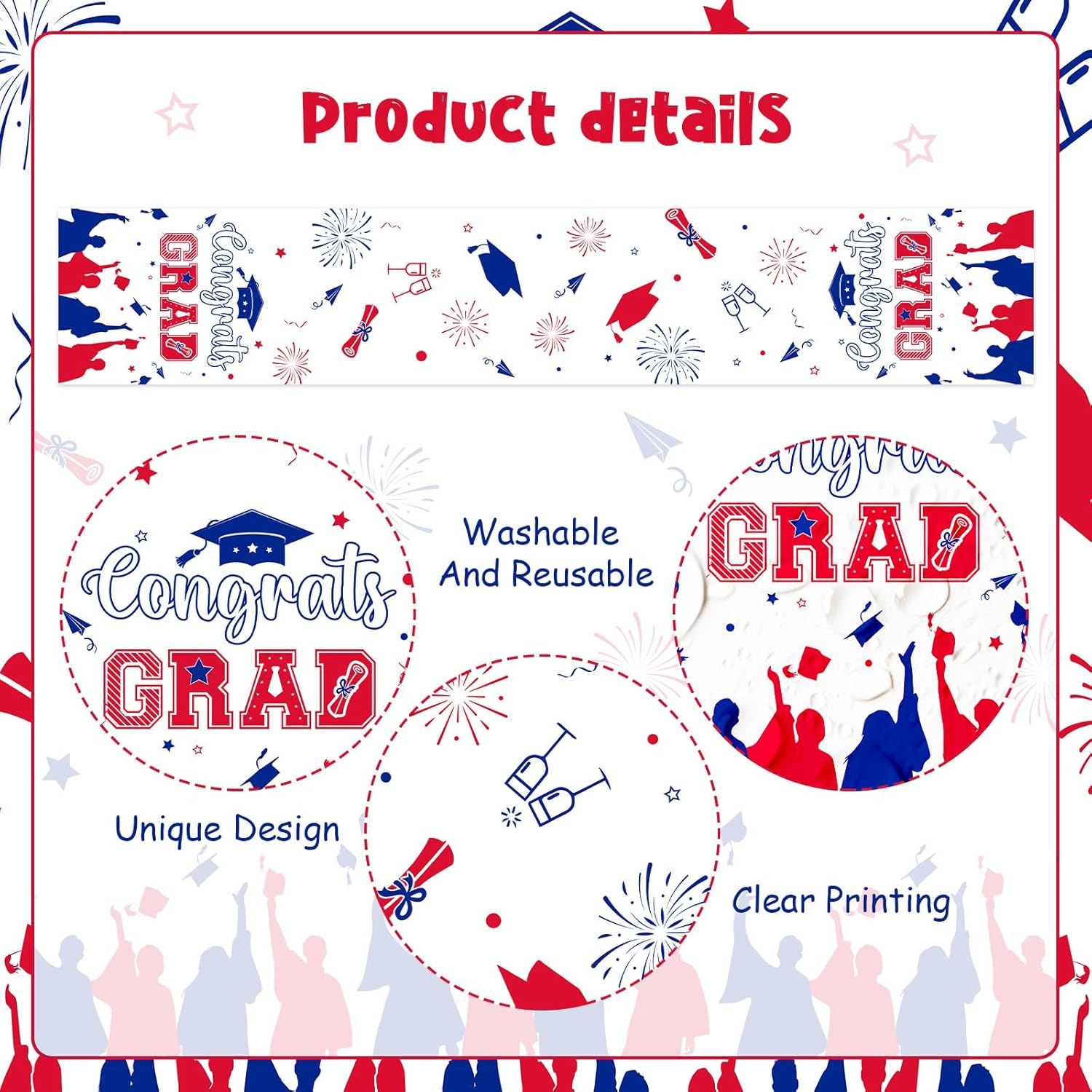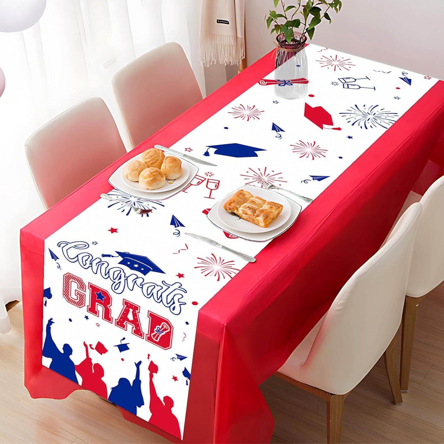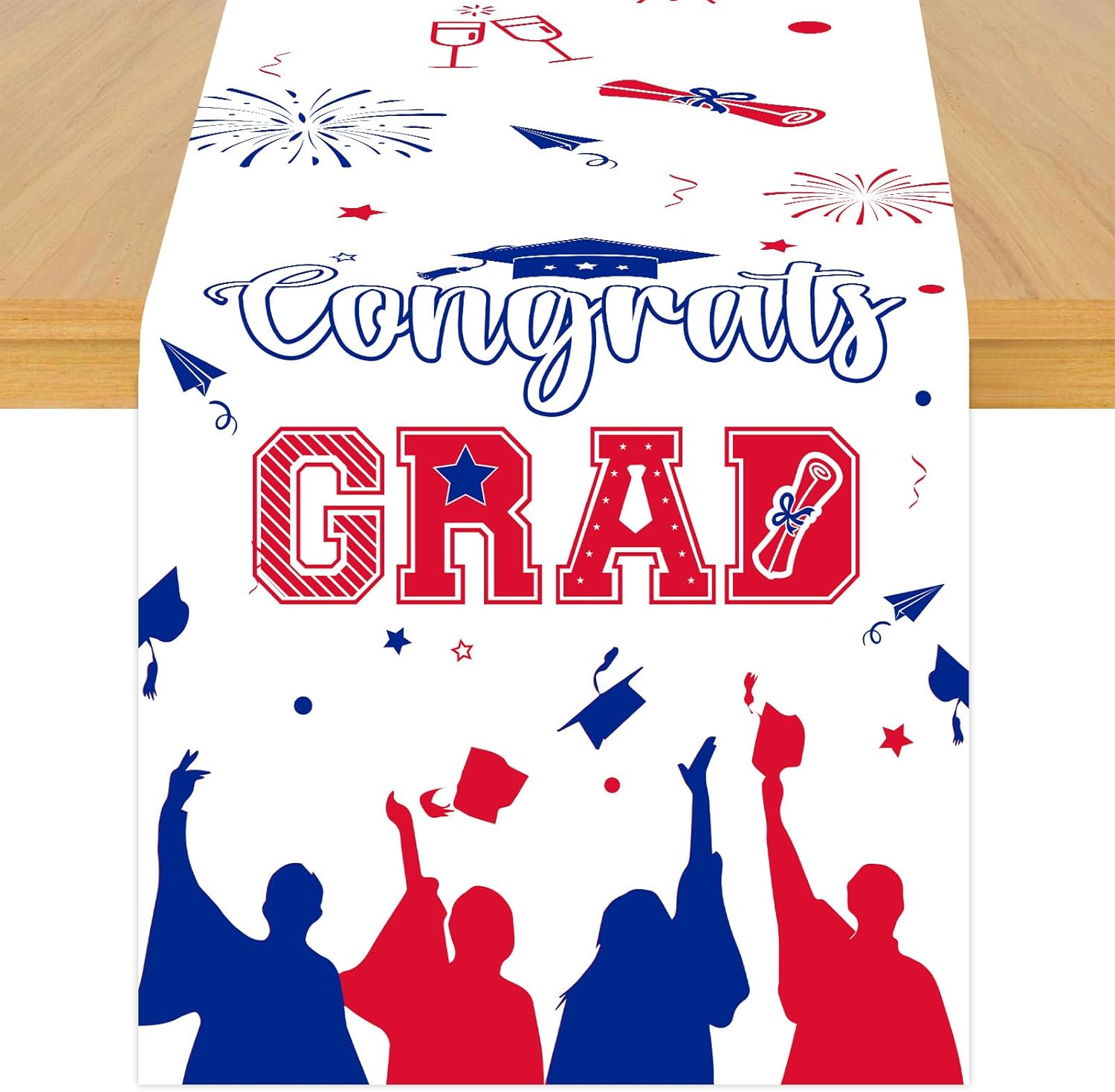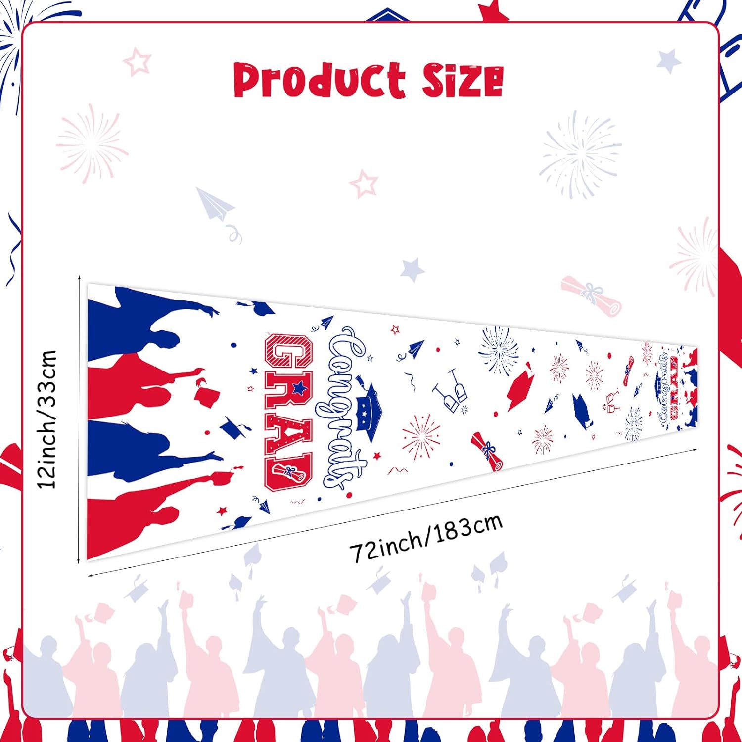 About this itemnLinennUniversal Size: The size of our table runner is 13 x 72 inches, appropriate for most tables. Offer you creative and unique ideas to decorate home, add beauty to your coffee table, dining table, living room table, study table and office table.nWide Applications: Our table runner have a wide range of applications. this lovely table runner can be widely used in many different occasions, such as dining room, kitchen, living room, coffee table, wedding, banquet and so on. And it also can used in graduation ceremony to express the feeling for your daughter and son that we are proud of you. At the same time, it is a responsible protector of your table.nHigh Quality: Our table runner is made of premium linen material, featuring natural linen texture and tactile sensation, which suit for graduation themed party and adds a touch of elegance to your dining table and provides soft cushioning for your tableware.nUnique Design: Our table runners are featuring the theme of graduation, patterned with graduation and celebration element patterns, which will add charm and style to your special occasions, showcasing your taste and style.nFunctional and Useful: Whether you’re hosting a casual family dinner, a formal gathering, or a special event, our table runner is suited for your need. It can also be used as a decoration for graduation celebration for each class of graduates, especially for the class of 2025. It protects your table from water, heat, scratches and stains.
