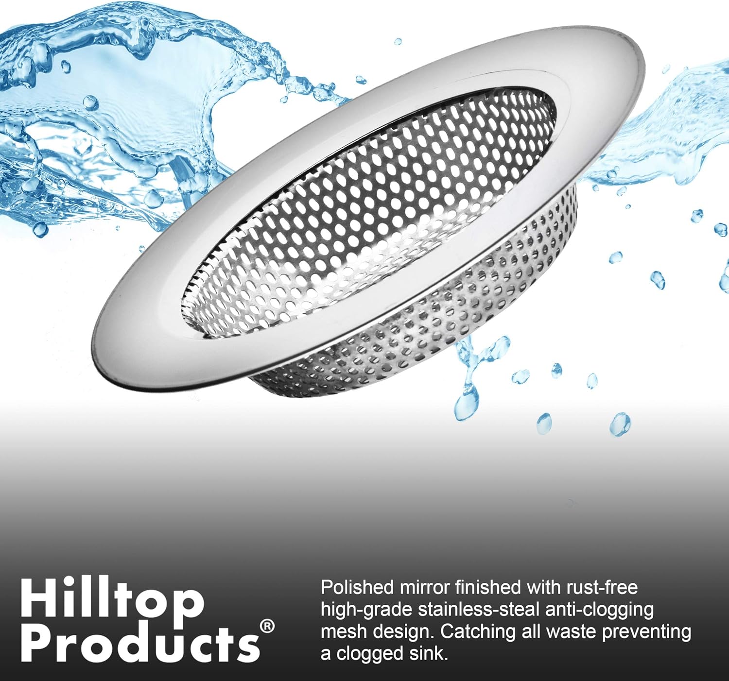 About this itemnPackage – The package consists of 1 Kitchen Sink Strainer, 1 Kitchen Sink Stopper; must have kitchen item to keep your sink clean. Stops water, kitchen scraps, or food waste, Strainers and stopper are suitable for most standard size kitchen drain 3-1/2-inch kitchen sink drain. Please note: The sink strainer and stopper cannot be used at the same time.nKitchen Sink Drain Stopper- Fit Most Standard Kitchen Sink Drain: 3-3/8 inches in diameter. Simple solution to prevent spatter back from food disposal or food and waste into pipe/plumbing from clogging; Also can be used as drain stopper to holding water in the sink for washing or keep kitchenware from going down the drain.nKitchen Sink Strainer – Fit Most Standard Kitchen Sink Drain: 4-1/2 inch in diameter; Basket Strainer effectively catch food, waste, scrap from going down the drain and clogging up the plumbing in the kitchen; Holes on the basket for smooth and fast drainage.nThe strainer and stopper are rustproof, and allow for long term usage. No equipment is needed to install the strainers or stopper. Easy cleaning by removing the back to empty. Dishwasher safe; Please check the size or product and drains installed in your house before purchase.