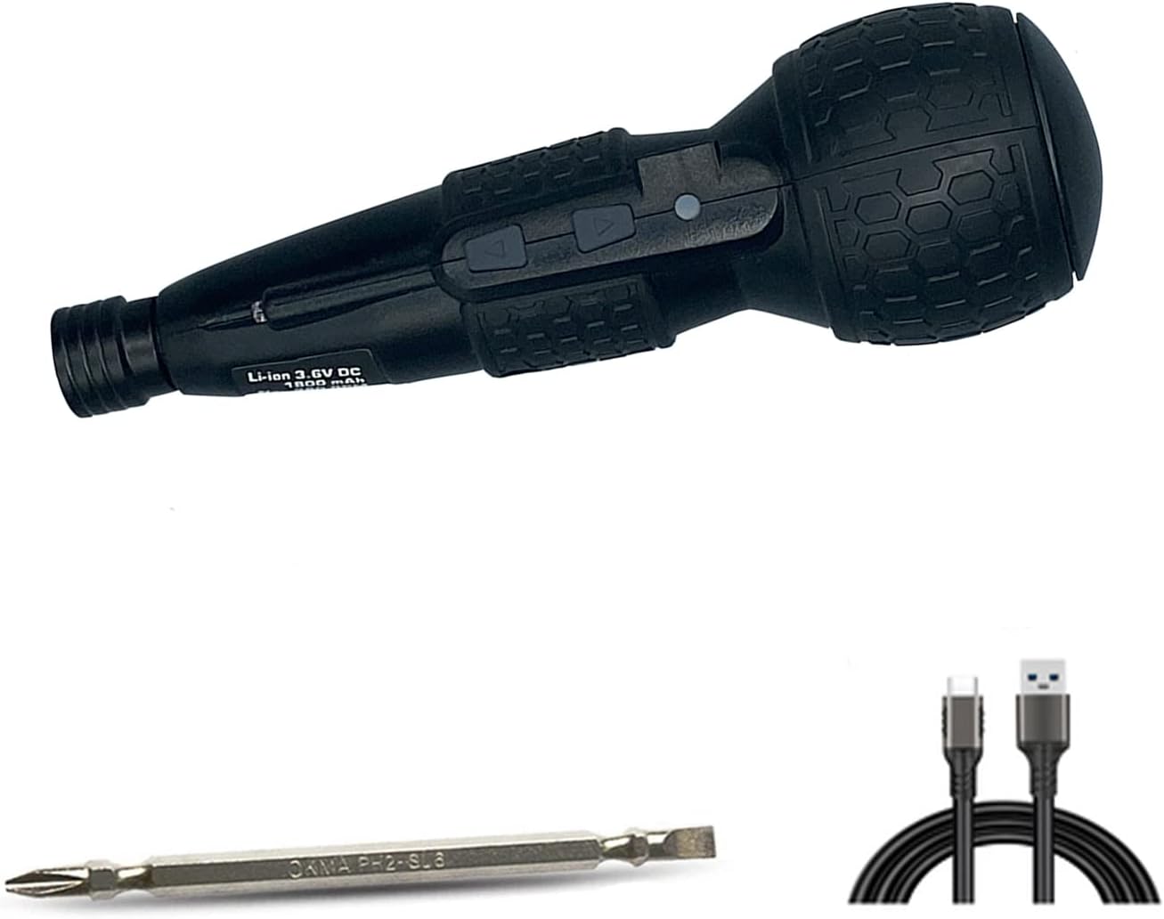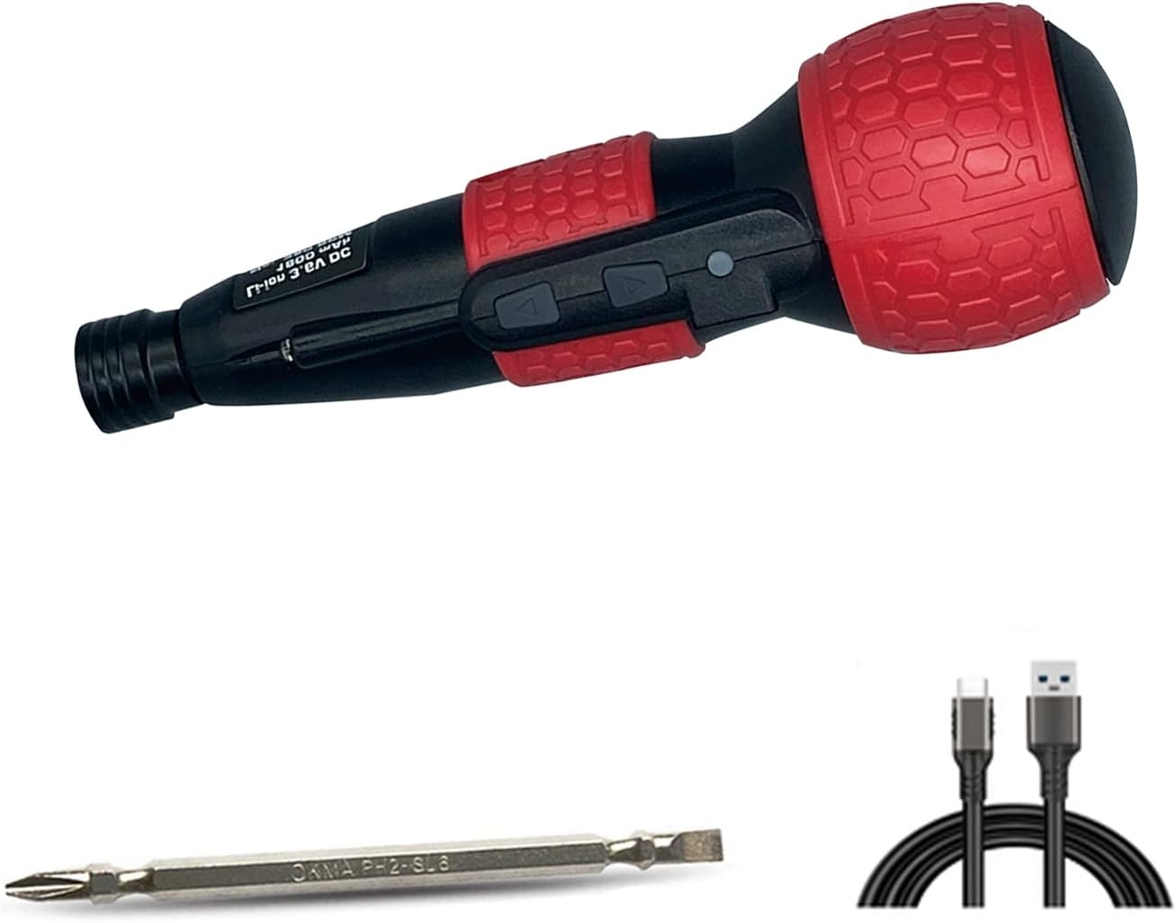 About this itemnIntegrated manual and automatic mode, the maximum electric torque is 3N.m, and the maximum manual output torque can reach 10N.mnLong tip material: good material-S2-steel, high hardness, good toughness, imitating the appearance of traditional screwdriver, good feel, light weight, low noise, easy to operatenPower your cordless screwdriver anytime, anywhere with micro USB chargingnLED light easy to see the work space even in dimly lit placesnThis small electric screwdriver will help you start any home improvement DIY project and is also friendly to women, easy to taken› See more product details