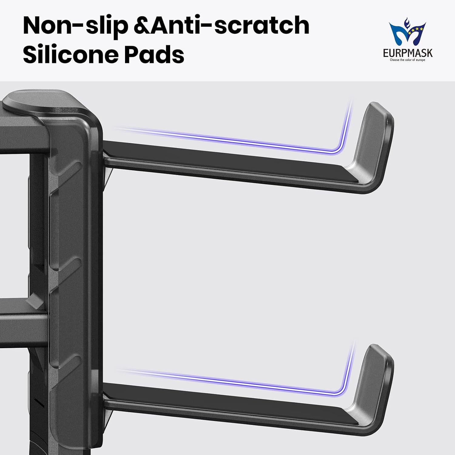 About this itemnDual Controller Holder &1 Headphone Hanger – Eurpmask 3-in-1 stand features a 360 degree rotating hook and 2 detachable holder to hold 2 game controllers and a headphone simultaneously. It fits all kinds of gaming controllers under 2.2 lbs(1 kg), likePS5/PS4, Xbox One, 360, Xbox Series X , Switch Pro, Steam controller and other PC gamepads. Elegant black finish fits various style of your gaming area and workstation.nConvenient Storage – Storing your headset and controllers under desk means you get an ideal solution for narrow space. Keep your frequently used devices within arm reach and make your desk space clutter free.nCable Clip for Organization – A little cable clip keeps headphone cables from dragging on the floor or getting tangled up under desk. It enables you to fold cables and hold them on the side.nSpring Loaded Clamp – Easy to open the clamp and secure it on your desk edge. The adjustable range of clamp is from 0.31 inch(8mm) to 1.57 inches(40mm) that allows you attach this stand on anywhere you need, instead of permanent adhesive.nProtective Rubber Pads – There are rubber pads on the clamp and controller holder to avoid this holder moving around your desk and protect your devices from scratches.