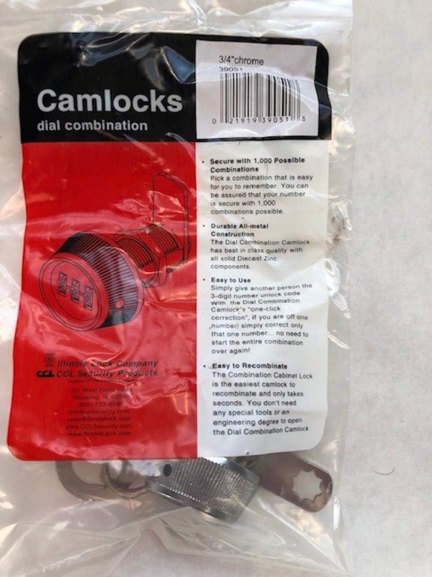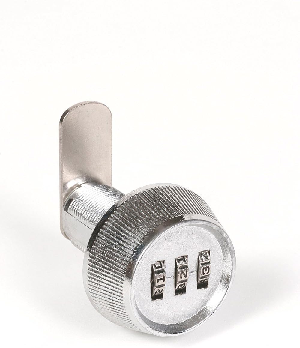 About this itemnDurable all-metal construction for long lasting use; Chrome finishn3 dials which makes it secure with 1,000 possible combinationsnOverall length of 15/16 inchnEasy to use and recombine; Multiple rotationsnWorks in any application that has a standard keyed cam lock; Ideal for metal and non-metal doors, cabinets, boxes and drawersnDiecastn3 Dial Resettable Combinationn15/16-Inchn› See more product details