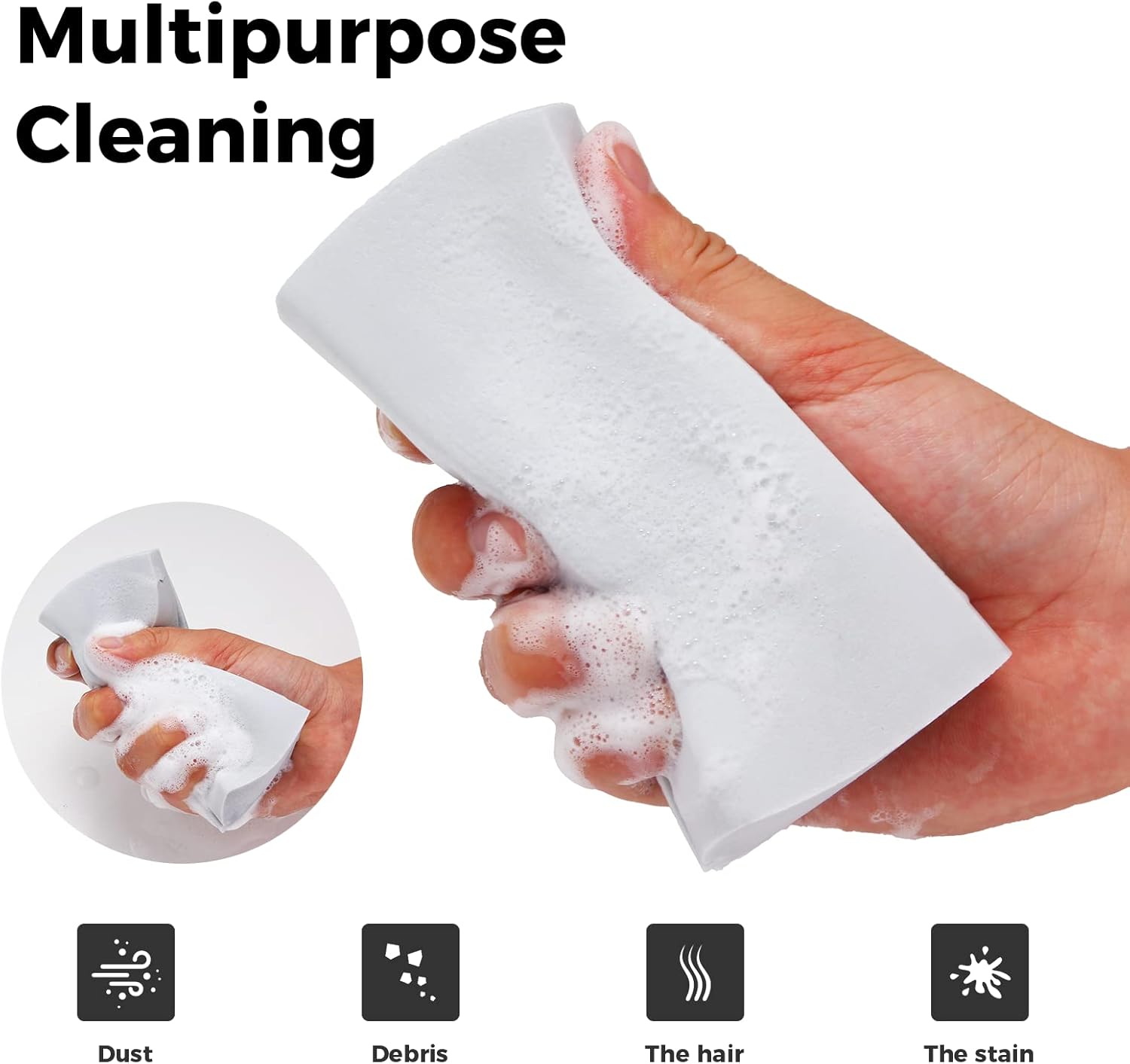 About this itemnDamp Clean Duster Sponge—Jeymei damp clean duster sponge can help you easily remove dust, debris, hair, and stains in your home, so that you no longer worry about dirty cleaning!nWear-resistant and Sturdy—The high-density cleaning sponge needs to be soaked and softened before each use, and it can be reused after washing and drying. The U-shaped groove design of the sponge cleaning brush is easier to remove dust particles and has strong versatility.nStrong Water Absorption—Dense water absorption holes can absorb a large amount of water and have strong water absorption. After the dusting sponges is fully soaked, it will become softer and have better cleaning power.nPackage Contents—Contains 4 pieces grey of Jeymei baseboard cleaner sponges.Warm Tip: Pre-moistened sponge. Packaging has water vapor.nMultiple Use—The wet dust sponge is suitable for cleaning baseboards, vents, railings, bedside table,track grooves of windows, faucets, blinds.