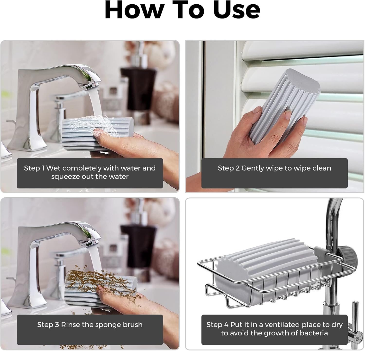 4-Pack Damp Clean Duster Sponge, Sponge Cleaning Brush, Duster for Cleaning Blinds, Glass, Baseboards, Vents, Railings, Mirrors,Window Track Grooves and Faucets?Gray?