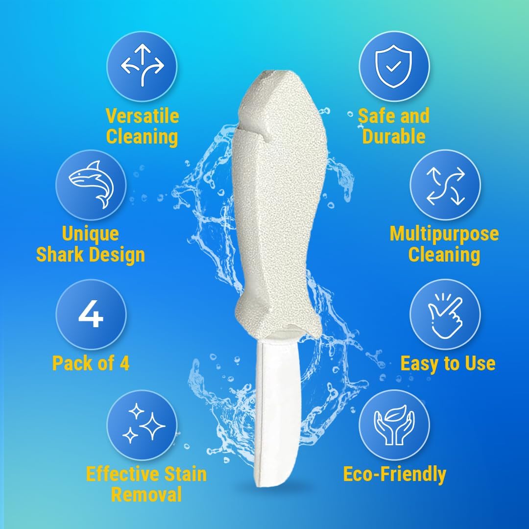 About this itemn??? Multifunctional Cleaning: Our shark-shaped pumice stones are not just for toilets; they’re versatile enough to clean kitchenware, bathtubs, sinks, BBQ grills, and even swimming pools.n??? Effectivness: Whether it’s rust, hard water stains, grease, or grime, our pumice stones are up to the task, offering powerful stain removal across various surfaces.n??? Gentle on Surfaces: Despite their tough cleaning power, our pumice stones are gentle on surfaces, ensuring a scratch-free finish on porcelain, ceramic, stainless steel, and more.n??? Ergonomic Design: The shark-shaped design provides easy handling and precise cleaning, allowing you to reach tricky spots effortlessly.n??? Long-lasting Performance: Crafted from high-quality pumice, our stones are durable and designed to withstand repeated use, providing long-lasting cleaning performance.