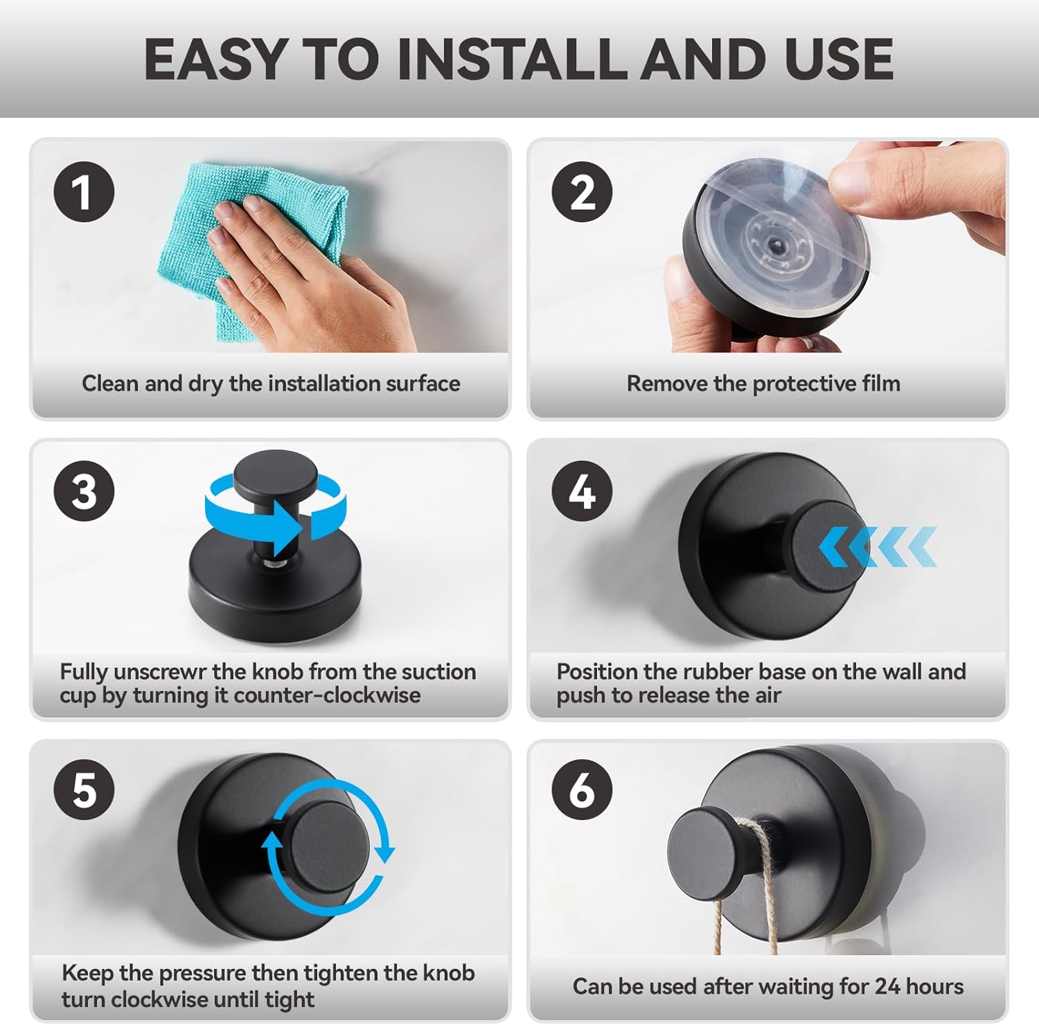 About this itemnNO-HOLE INSTALLATION: Suction cup hooks for shower adopts a tool-less, no-drill easy installation to avoid wall damage, simple and removable for reuse, and the can be used in conjunction with any other bathroom accessories. NOTE: When installing the suction cup base must be pressed to expel air to make the product more stablenSUITABLE FOR A VARIETY OF SURFACES AND SCENES: Suction cup hooks are only suitable for dry flat and smooth non-porous surfaces, such as glass, acrylic, marble, tiles, metal, mirrors, laminates and other smooth non-porous surface materials, applicable scenes, bathroom, kitchen, living room, bedroom, office, etc. Note: Not suitable for dusty and uneven surfaces, such as lime walls, etcnPREMIUM QUALITY MATERIAL: Bathroom towel hooks are made of stainless steel with a super-sticky silicone base that is moisture- and rust-resistant, perfect for environments such as bathrooms and kitchens. They can hold up to 11lbs, ensuring your essentials are securely hung and won’t slip or fall offnLUXURY DESIGN?pierpel suction towel hook adopt round hook design to enhance the beauty of the decoration, do not hurt the hand, do not hurt the clothes, easy to usenBEST CHOICE: Suction cup hooks for glass windows are a practical choice for family or friends when dressing up a new home. Can create more storage space in your home keep your home tidy and make life easiern See more product details