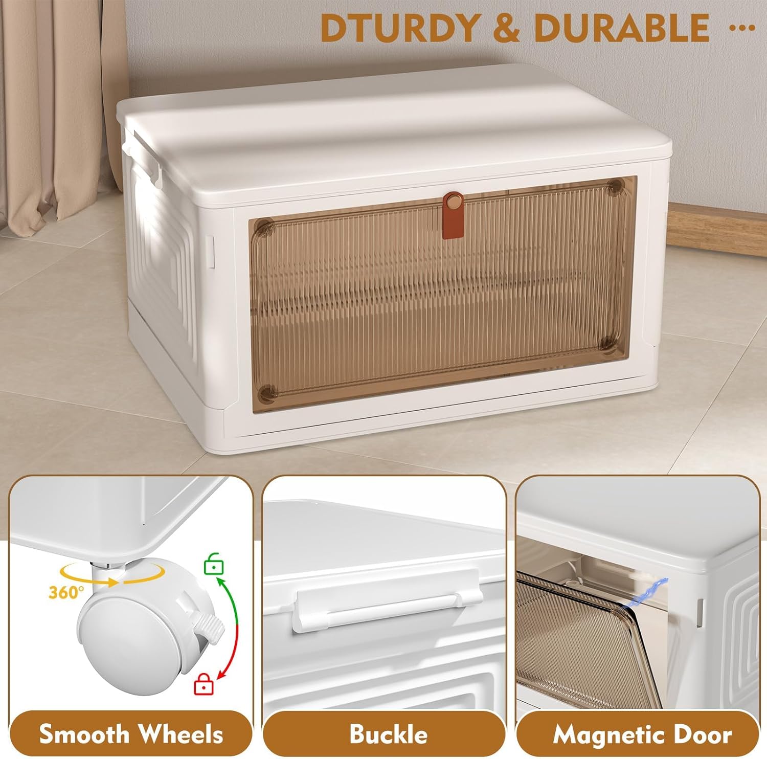 About this itemn?92Qt Storage Boxes?With total volume of 92QT, the storage box measures 15.35in*11in*8.27in each tier.The Storage bins are good for sorting out toys, crafts, photos, medicine, snacks, makeup product etc. Also handy as extra storage in the garage, classroom, closet, bedroom, bathroom, office, or pantry. Combining good looks and practicalityn?Stackable & Install-Free?Stackable bins for storage with lid is a stackable and install-free storage bin. It allows to fold flat when not use and you dont need to keep instructions to remember how to assemble and reassemble or use tools to operate it when you want to use itn?High Quality Material?Made of high-quality PP,the product can be firmly used after assembly, and can also be detached for use alone. High-quality materials make the product have a longer life, which is undoubtedly the first choice for the same pricen?Two Opening Ways?Storage bins with lid can be opened in two ways. You can open the top lid or open it from the front door.The front door switch comes with a magnet to ensure that the door does not open automatically. The front door makes it easy to access everything inside without having to pull everything down or remove things from the top cover. Prevent objects from being exposed to dustn?Movable Storage Containers?There are 4 wheels at the bottom of the storage box, which can be easily moved when needed. In addition, the storage organizer’s 2 wheels have buckles that keep the wheel in place to prevent it from moving