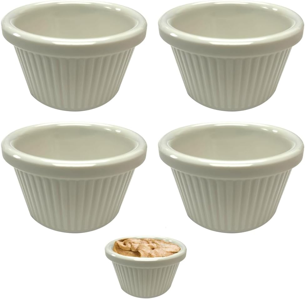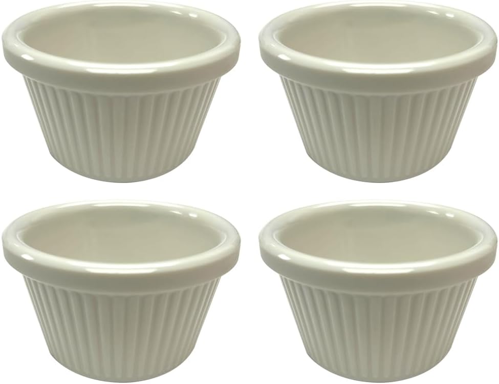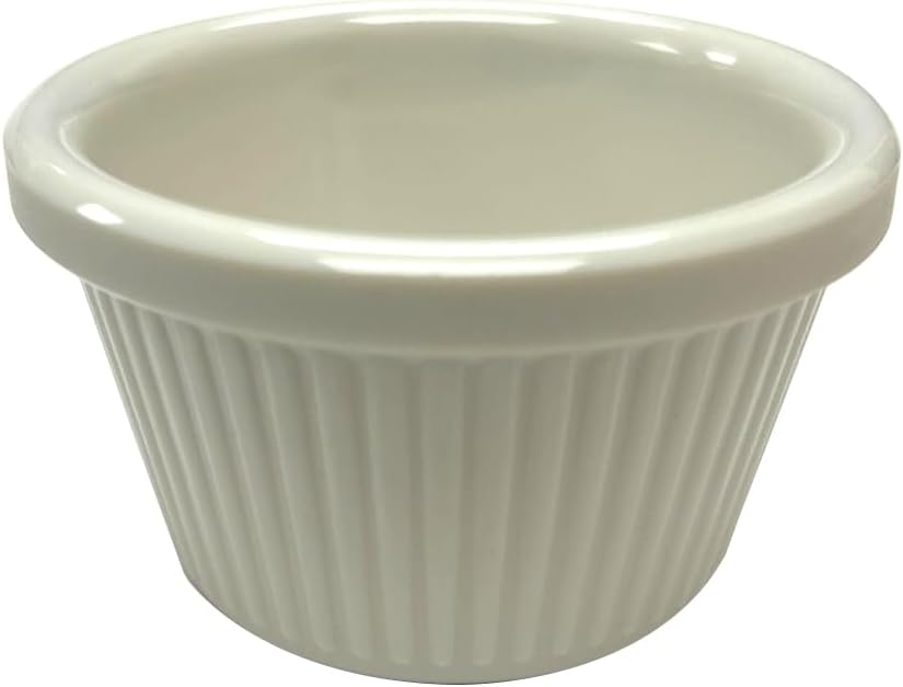 VERSATILE & FUNCTIONAL – ramekins are perfect for baking and serving individual portions Exactly designed for dipping sauce, ketchup, salsa, jams, cheese, souffle, crème Brulee, and snacks. Easily match the many uses of your life.nDURABLE & BREAK RESISTANT- resistant melamine, ensuring it can withstand the demands of daily use in both commercial kitchens and dining areas. Its classic fluted design and bone white color beautifully complement table linens, dinnerware, and other dining accessories. The striking contrast it offers enhances the presentation of your dishes, making them stand out for a visually appealing and attention-grabbing look.nSAFE FOR FOOD : Dishwasher Safe, BPA Free, NSF ListednMAKE A GREAT GIFT These ramekins make a great gift for any baker. They make a great housewarming or birthday gifts plus they are stackable