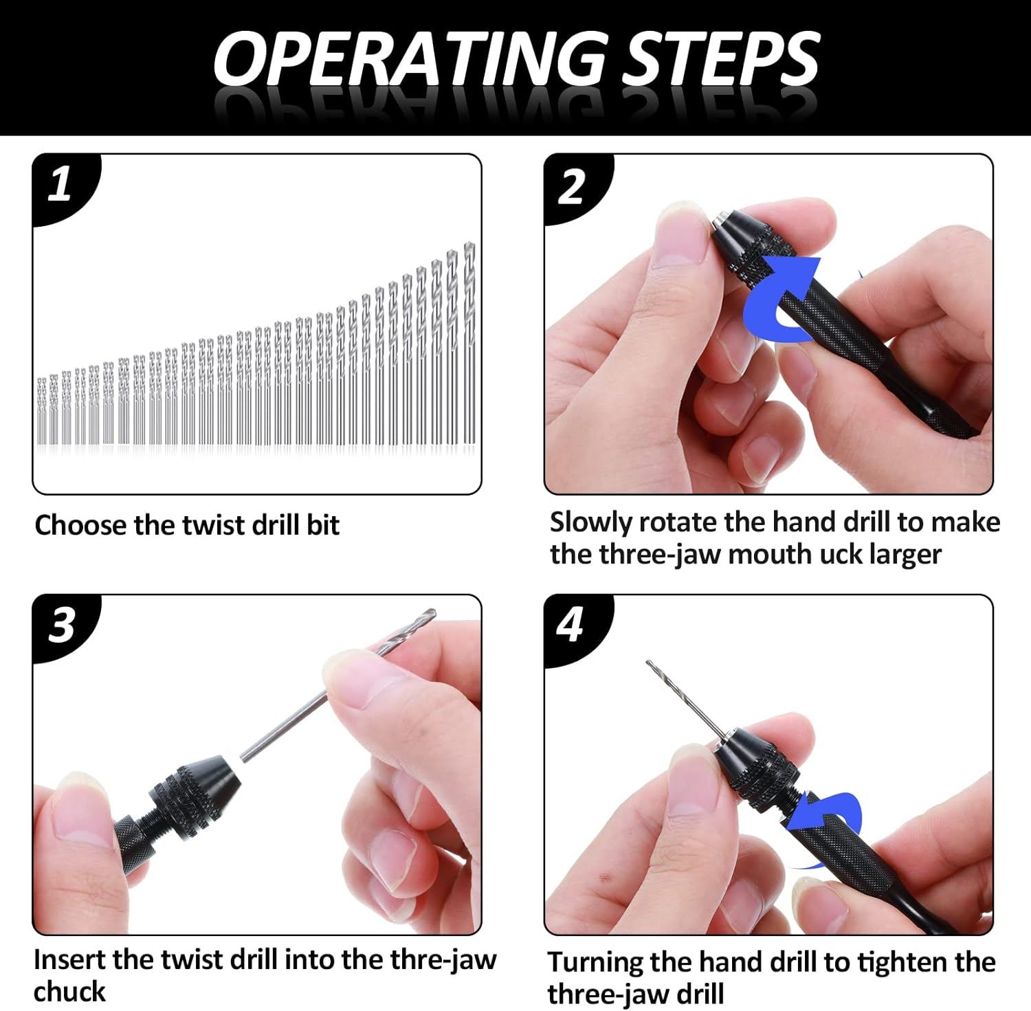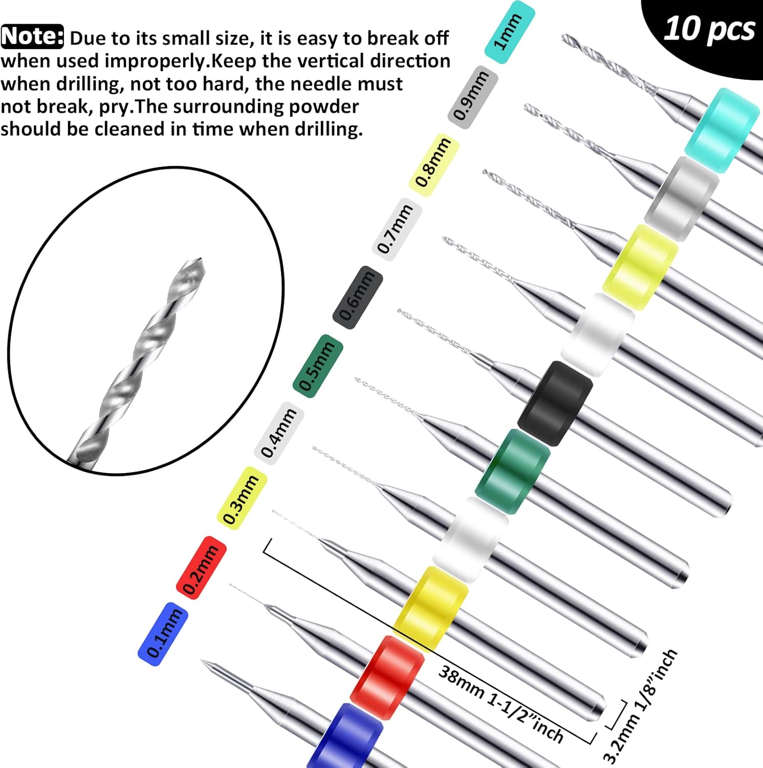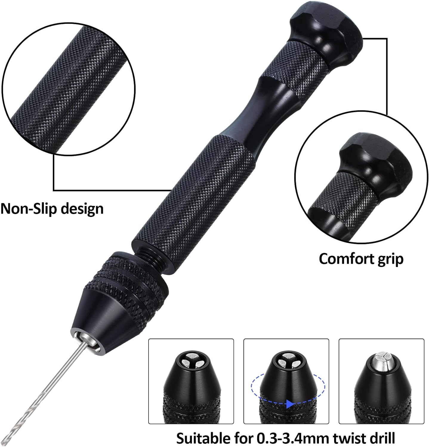 About this itemnWhat you receive: this hand drill bits set includes 1 piece of pin vise hand drill, 46 pieces of micro twist drill bits and 10 pieces of PCB mini drill bits, total 57 pieces for your craft carving DIY worknPin vise hand drill: made of aluminum alloy, this pin vise hand drill is durable and firm, adopting 3 claws chuck and 0.3 – 3.4 mm range of adjustable clamp, its tail can be rotated, sturdy and convenient for you to operatenMini drills: mini drills are made of tungsten carbide, the shank diameter is approx. 3.175 mm, overall length is approx. 38 mm, which fit for normal FR-4, CEM-3 boards, CNC, molds, plastic, circuit board, carbon fiber, composite board and so onnMicro twist drill bits: micro drill bits are light in weight and compact in size, won’t take up extra spaces, nice tools to be applied for handling wood, plastic, rubber, PVC, walnut, model, bone, angle, amber, olive, fiberglass and other materialsnPractical and portable: manual hand drill set is easy to carry or store in a toolbox or in pocket, making your daily work more convenient, which are suitable for electronic assembling, tooling, model making, winding, home decorating and so onn See more product details