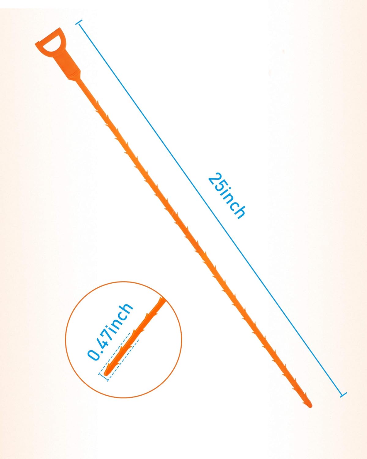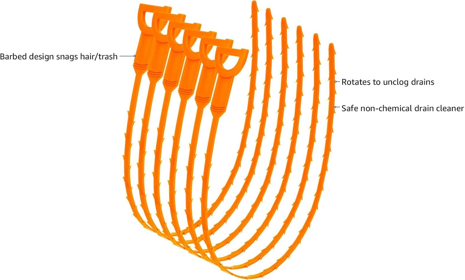 About this itemn?PERFECT COMBINATION?6 pack * 25 inch plastic drain clog remover tools has enough quantity, drain hair clog remover can be used for a long time.n?HIGH QUALITY& FLEXIBLE?The drain cleaner hair clog remover tool is made of durable modified polypropylene, sink snake is more durable not easy to snap or break. The excellent flexibility of barbed can easily bend into P-trap that the drain where most clogs occurred and snag hair clogs, and other blockages to achieve a high clean effectively.n?EXCELLENT LENGTH? The drain hair remover has long size: 25icnh, shower drain clog remover tool long enough can meet diffrent drains, hair drain clog remover very flexible, drain cleaner sticks to insert to deep pipes, hold the loop, easily pull out blockages.n?EASY OPERATION?Just hold sink clog remover tool handle loop, insert, pull sink cleaner from up and down and rotate a few times till remove clog, toilet snake won’t clamp hand while operating, nor entangled by hair, drain cleaner easy and safe to rinse off then storage.n?ENVIRONMENTAL & WIDE APPLICATION?Sink snake drain hair removal tool for kitchen sink, toilets, washbasin, bathtubs, sewers etc. Unclog sink drain more safer than chemical cleaners, sink drain cleaner tool you used, your home will be no unpleasant taste, healthier and safer, sink snake rust proof.